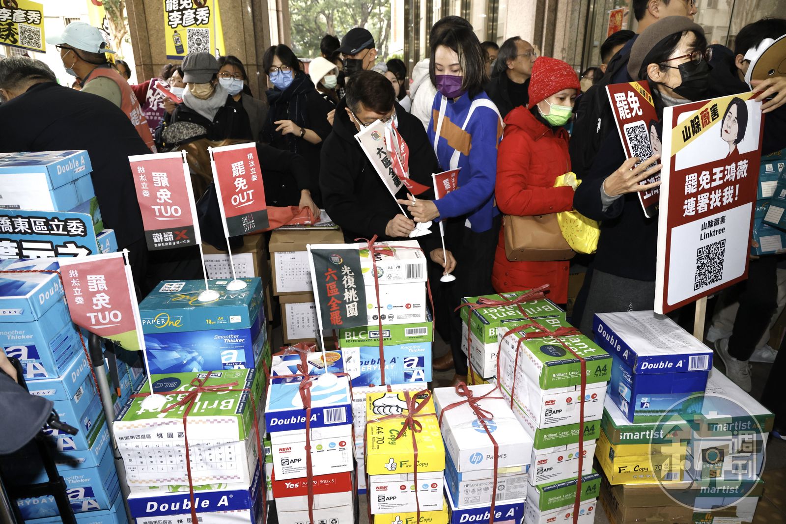 根據《選罷法》規定,民選公職上任滿1年後可提出罷免,本屆立委在本月1日正式滿上任1週年,今是年假後開工第一天,全台各地的罷免團體一早便前往中選會送件。