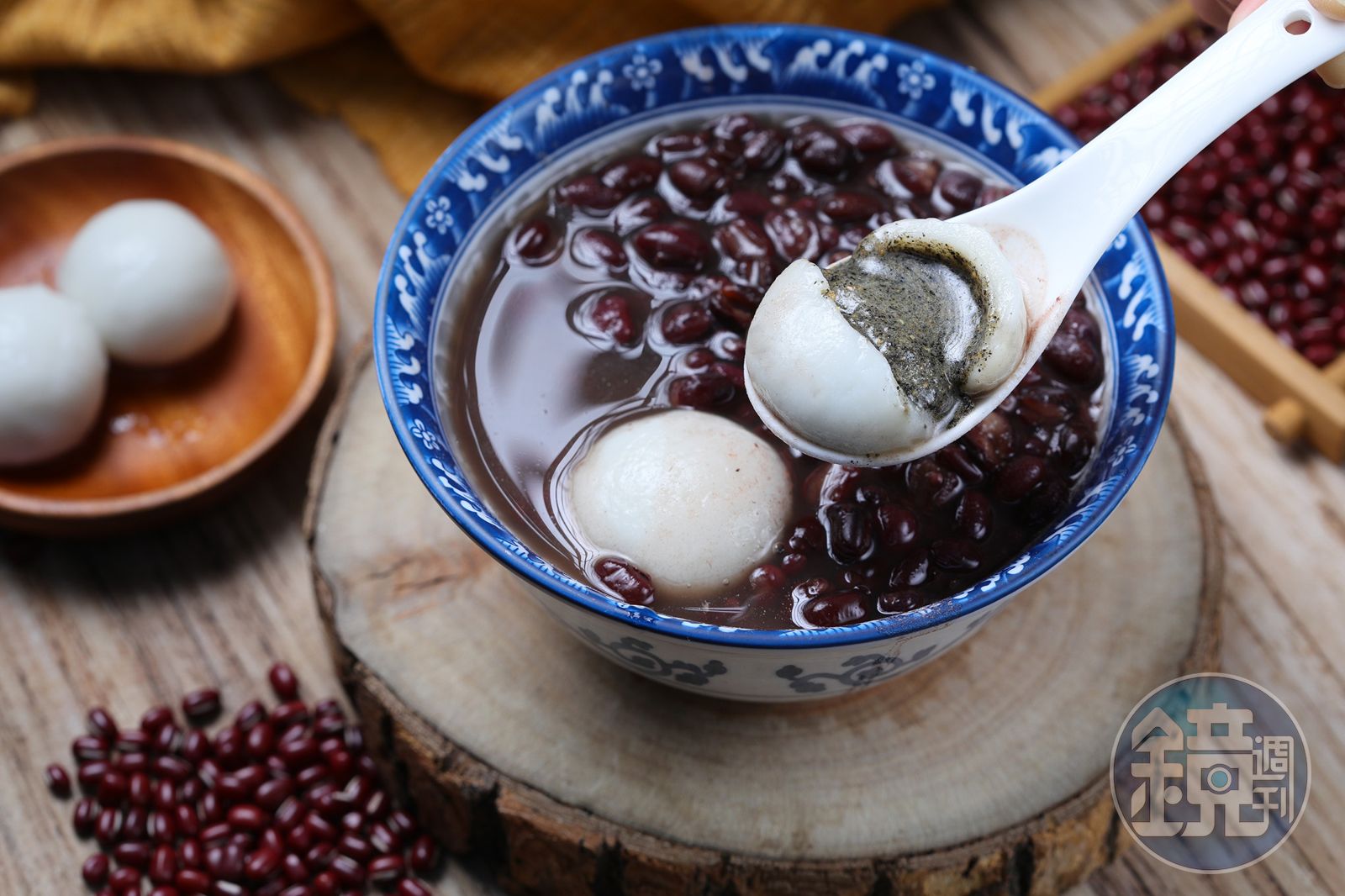 深知紅豆品質的重要性,老闆娘分享:「萬丹紅豆主要有八號、九號、十號,數字越大,紅豆顆粒越大,九、十號多用於送禮,八號則是製作紅豆製品的最佳選擇。」為了呈現紅豆最完美滋味,她遵循古法,以不斷燜、煮的交替過程,讓豆沙香氣充分釋放。她說:「紅豆湯要好喝,豆沙一定要煮進湯裡,喝起來才有濃稠感,但又不能把紅豆煮得太爛,外殼和內餡分離,那樣就失去口感了。」