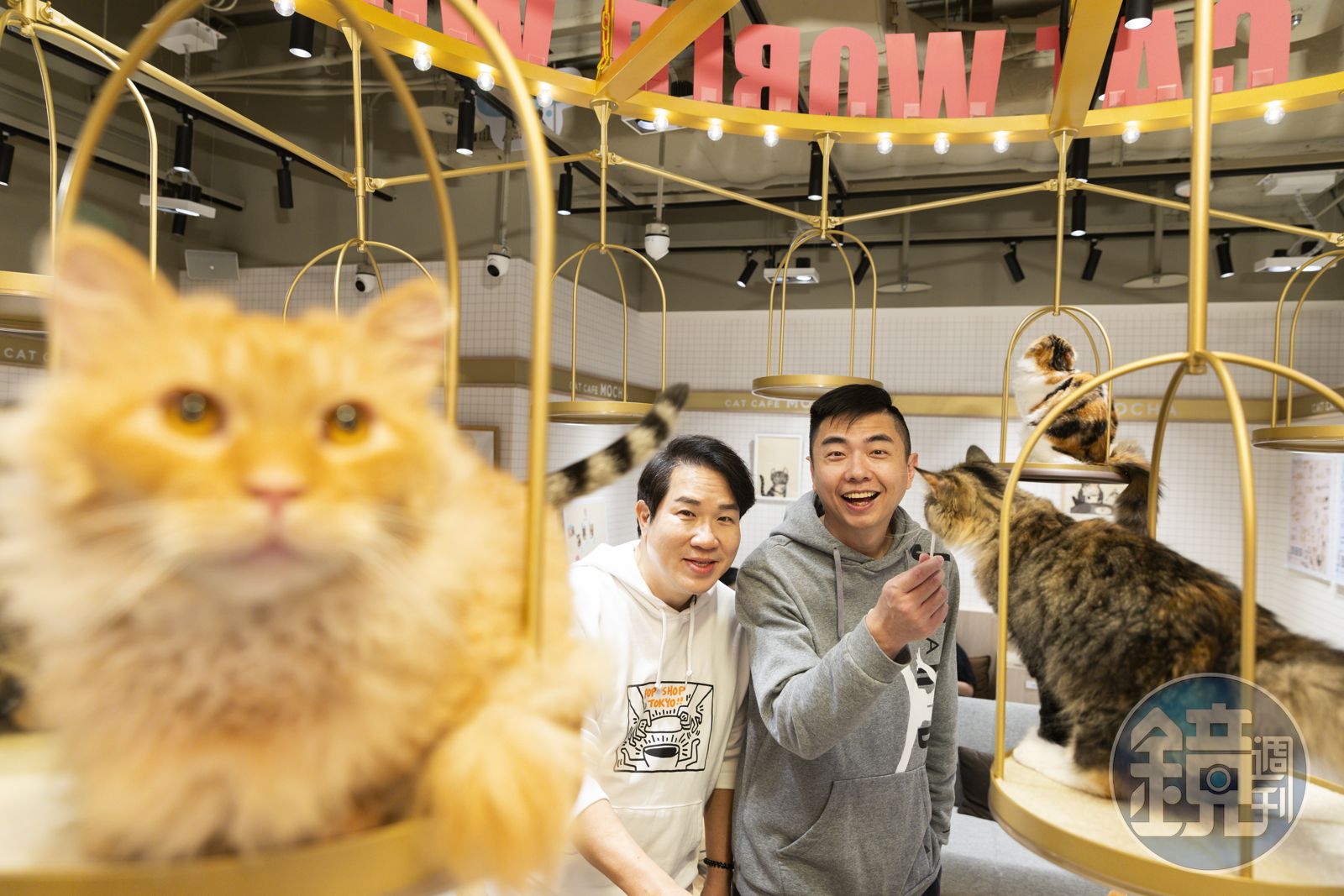熊爸提到,不少人認為貓Café裡的貓咪都是來上班,一定都很累,劉爾金隨即解釋:「不是的,你看我們的設施與環境都是為貓貓們設計的,牠們隨時睡、吃、玩都可以,這裡都是貓的世界,貓是陪伴著我們。」