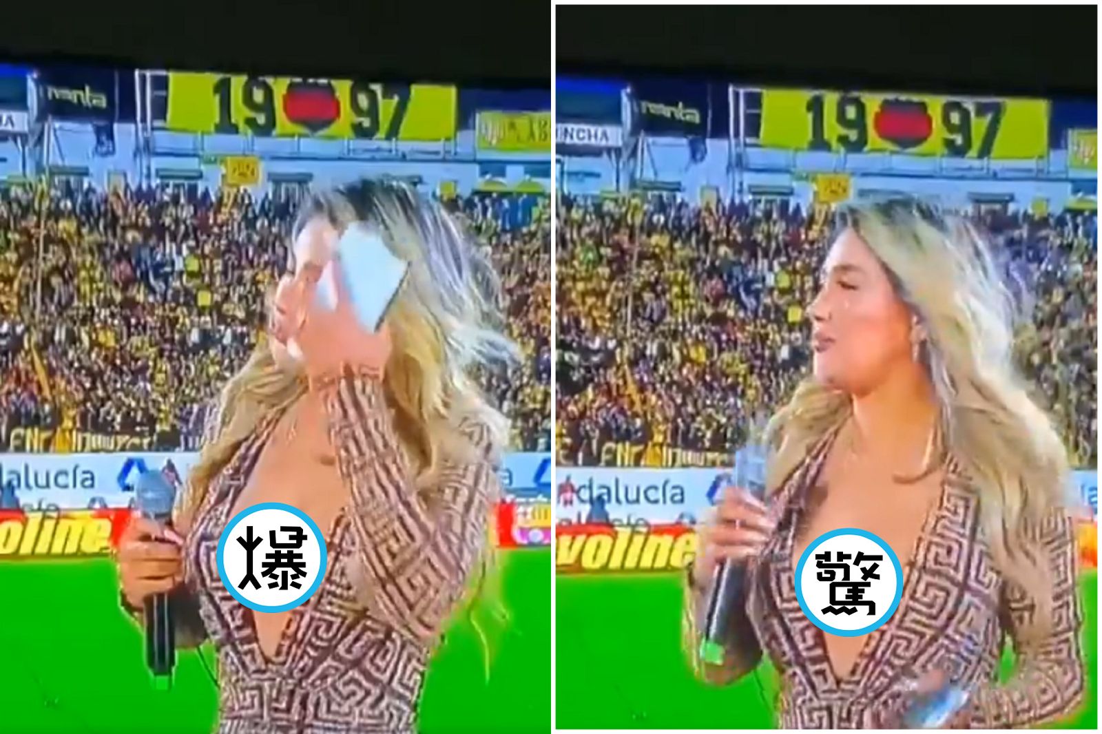 不過鏡頭也捕捉到一幕,瓦倫西雅一度以為自己不小心走光,於是趕緊低頭「喬奶奶」,幸好她確認到自己沒有春光乍洩,隨後回到正常狀態播報。此外,也有許多網友與觀眾都直呼:「對不起,我都沒在看比賽,我都在看她的『足球』。」、「我也只看見『奶奶』轉播賽事。」、「她穿得超大膽。」、「看球賽好嗨呀!」