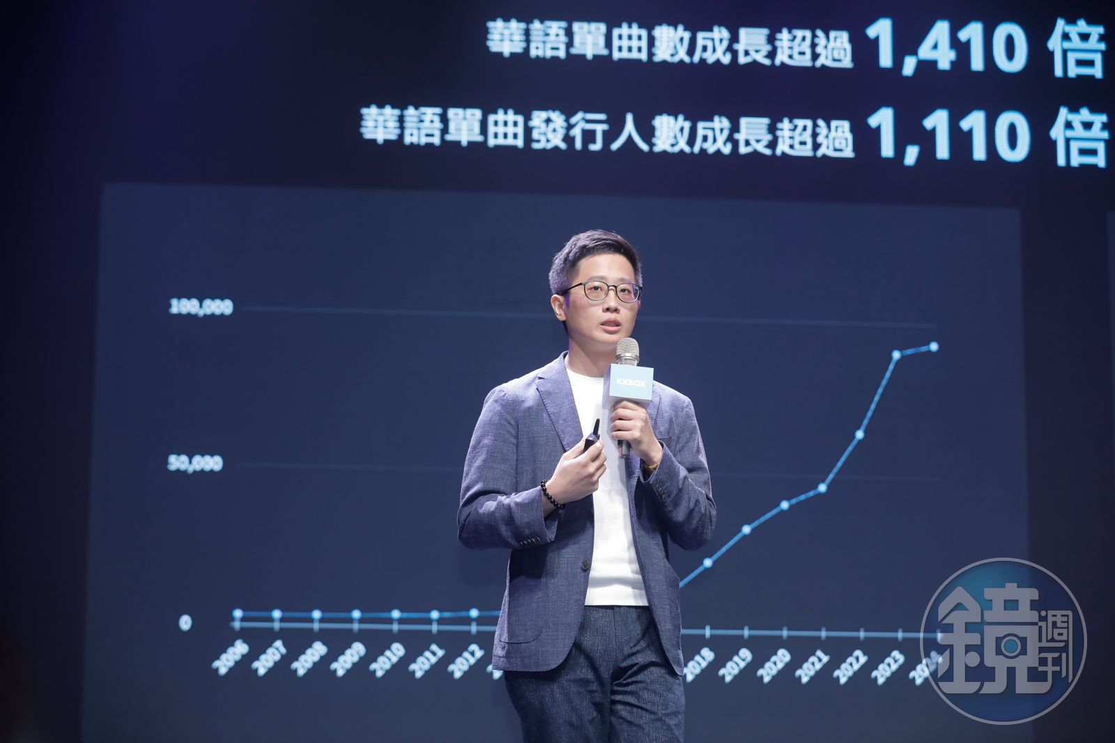 KKBOX回顧過往20年的重要里程碑,包括創立至今所有用戶已累積超過1000億次聆聽數、創建近5000萬張歌單,並吸引破億人次觀看過風雲榜演唱會盛事;科科科技亞太事業區暨KKBOX總經理葉展昀也特別以「更多、更快、更廣」三大面向分享音樂市場的變遷,「音樂產業正邁入分眾時代的新常態,曲風的多樣性、快速的歌曲產製以及國際化趨勢,充分展現各種類型的音樂皆能在市場中找到獨特定位與聽眾,讓創作者更有機會脫穎而出。」他指出,20年來全球音樂產業蓬勃發展,專輯發行總數至今已暴增超過85倍,而KKBOX近兩年平均每天增加7-8萬首歌曲,以一年超過2800萬首歌曲的發行量高速成長中,其中華語音樂更是有破千倍的驚人成長。近10年KKBOX的用戶每人平均每週聽歌時間接近翻倍,在華語歌曲收錄上曲風多樣性也明顯大幅提升。