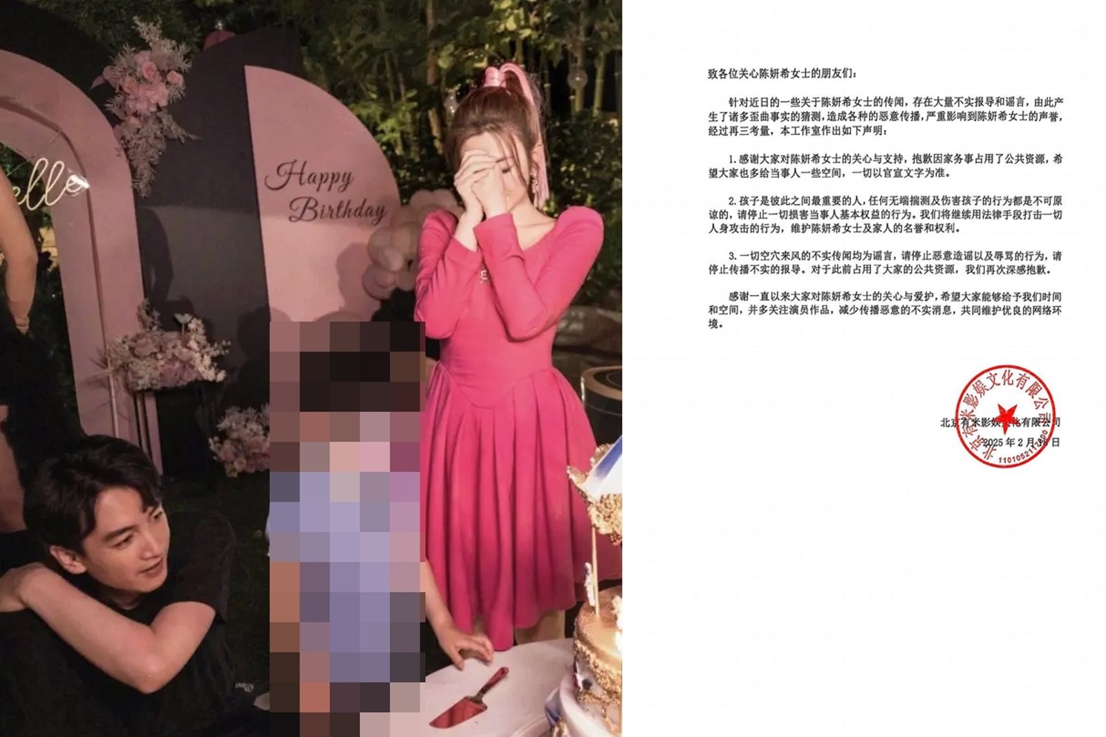 針對近日的一些關於陳妍希女士的傳聞,存在大量不實報導和謠言,由此產生了諸多歪曲事實的猜測,造成各種的惡意傳播,嚴重影響到陳妍希女士的聲譽。經過再三考量,本工作室作出如下聲明: