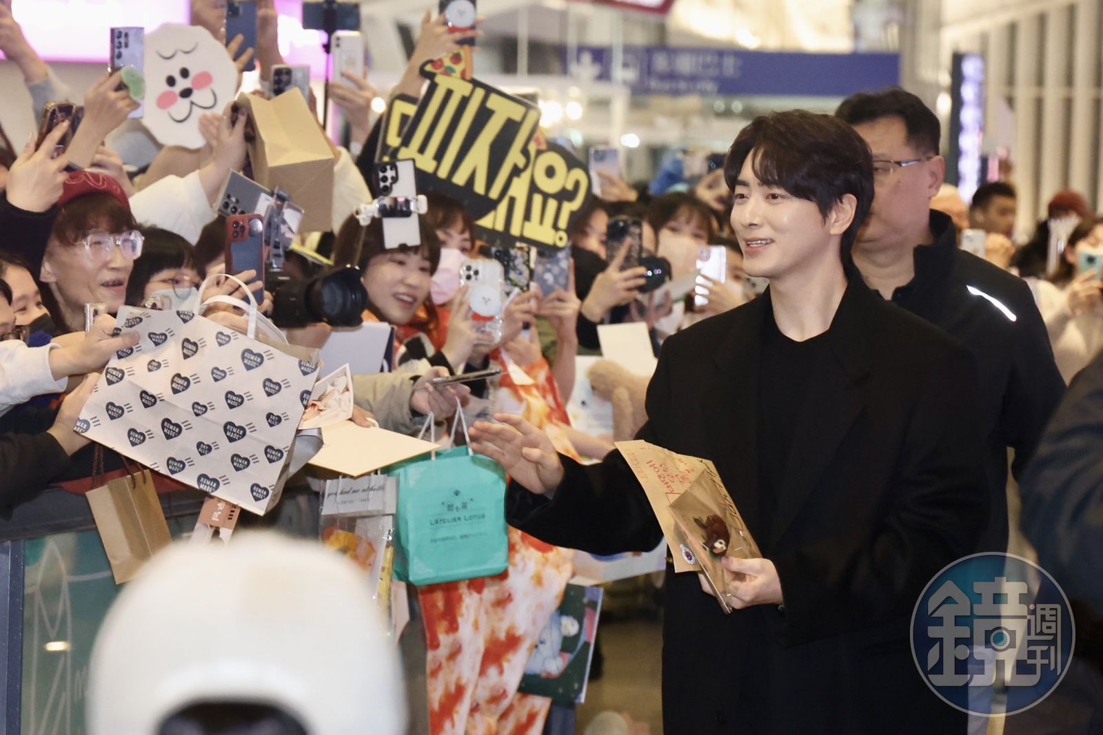 李浚赫因為《我的完美秘書》獲得高度關注,今下午從仁川機場出發時,機場也有許多媒體和粉絲送機,他露出害羞的笑容向大家揮手比愛心。在桃園機場入境見到大家,神情仍略顯緊張,但他很有禮貌,親切地和粉絲互動。看到粉絲帶著《再見,爆米花》繪本,李浚赫大方地簽名相贈,由於接機大廳空間有限,粉絲分為三個區域,李浚赫主動與每個區域的粉絲揮手,收信件,全程5分半,非常寵粉。