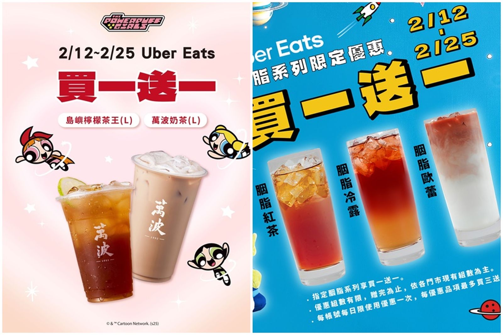 萬波島嶼紅茶即日起至2月25日推出「萬波奶茶」「島嶼檸檬茶王」2大飲品同品項買1送1優惠,使用外送平台Uber Eats即享優惠。