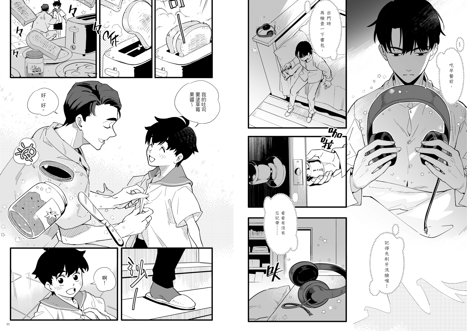 YAGI作畫時會將細節再強化,更貼近現實情境。「設定沒有提到左叔的耳機是哪一種,是耳塞式?還是耳罩式?我想到左叔能聽到他人的心聲,耳罩式感覺更能隔絕外部聲音。加上故事年代設定在2008年左右,考量當時的潮流,最後畫面就以耳罩式呈現。」