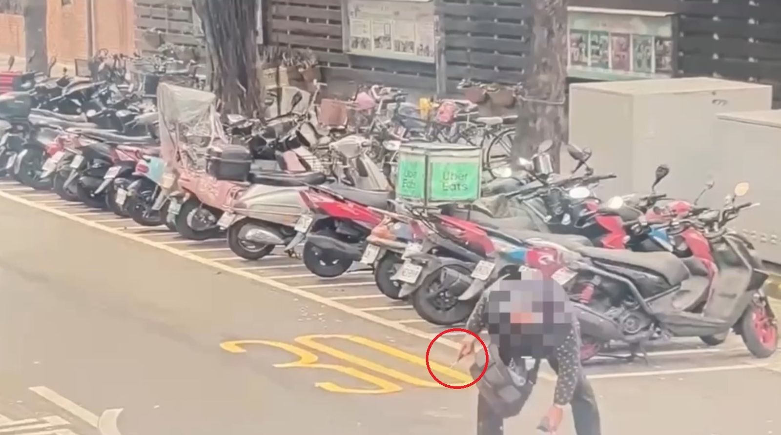 蔡男酒後持螺絲起子(紅圈)隨機扔向路人,後被依傷害罪送辦。(翻攝畫面)發布時間:2025.02.26 17:34 臺北時間