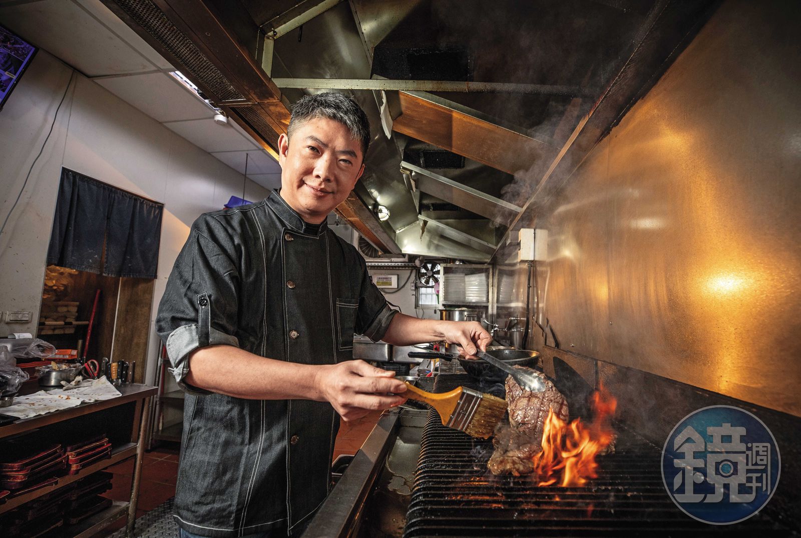 今年42歲、宜蘭土生土長的詹厚德,從國中就開始接觸這行,所以對牛排瞭若指掌。原來,國中不愛念書的他是學校的頭痛人物,國二就輟學,「那時我想賺錢,想買台拉風的摩托車」,在朋友引薦下,去了宜蘭東門夜市牛排店的廚房當學徒,「月薪1萬元,從洗碗、醃肉、切菜、炒醬料,做到會煎牛排。」學藝2、3年,國中也當五專念。