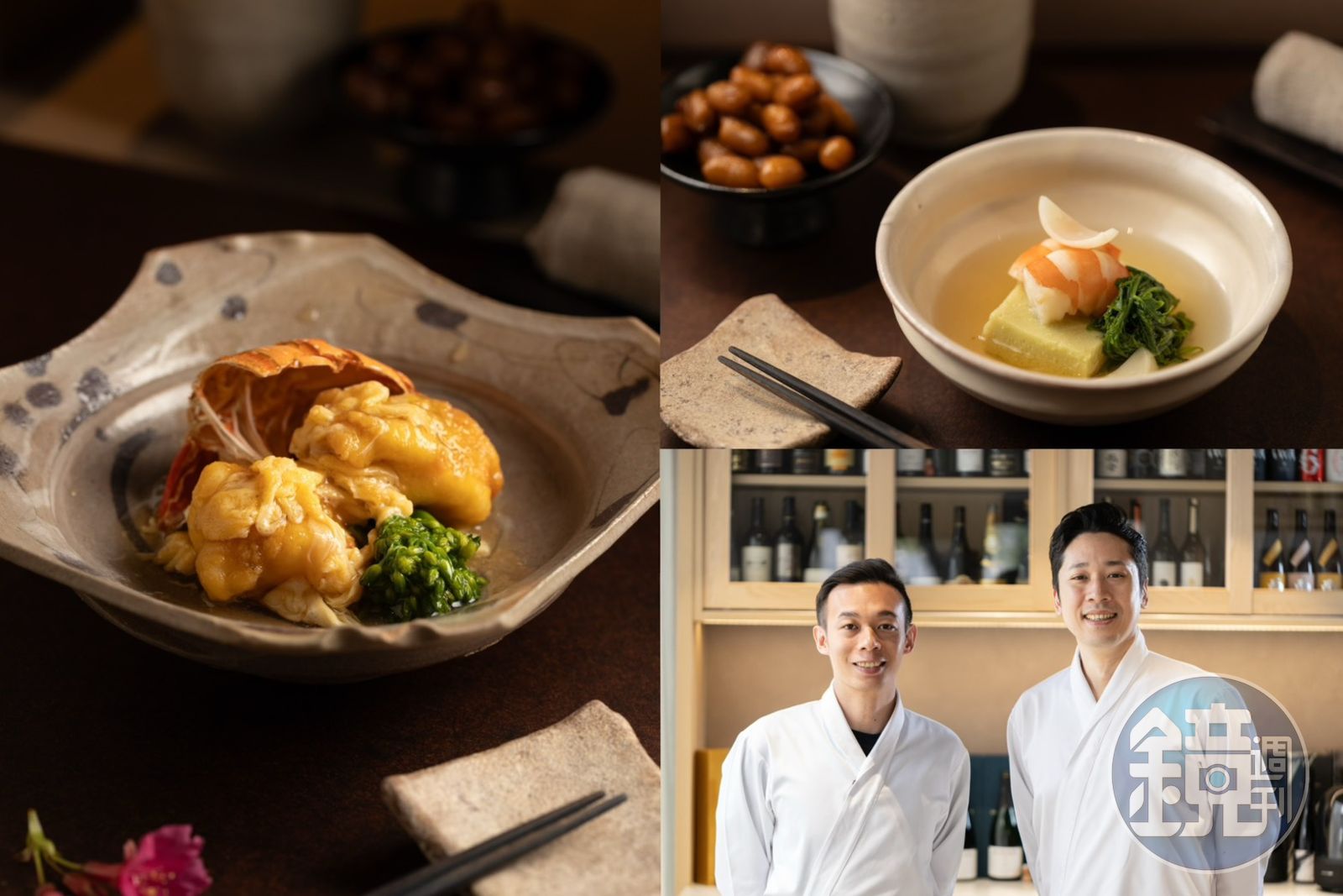 滑順蛋香與龍蝦鮮香引人入勝。但我心目中的亮點頒給「鮫鰈」刺身,同時能品嘗到鮮美油脂爆開的「緣側部位」,以及腹肉的柔軟甘甜;搭配的鮫鰈肝醬即便調和了較厚口的胡麻油、白味增,也只是更凸顯魚肉的腴嫩甜潤。主廚尹利洋說:「這道當成下酒菜也很合適。」並表示不是每種魚都能如鮫鰈,如此「物盡其用」。