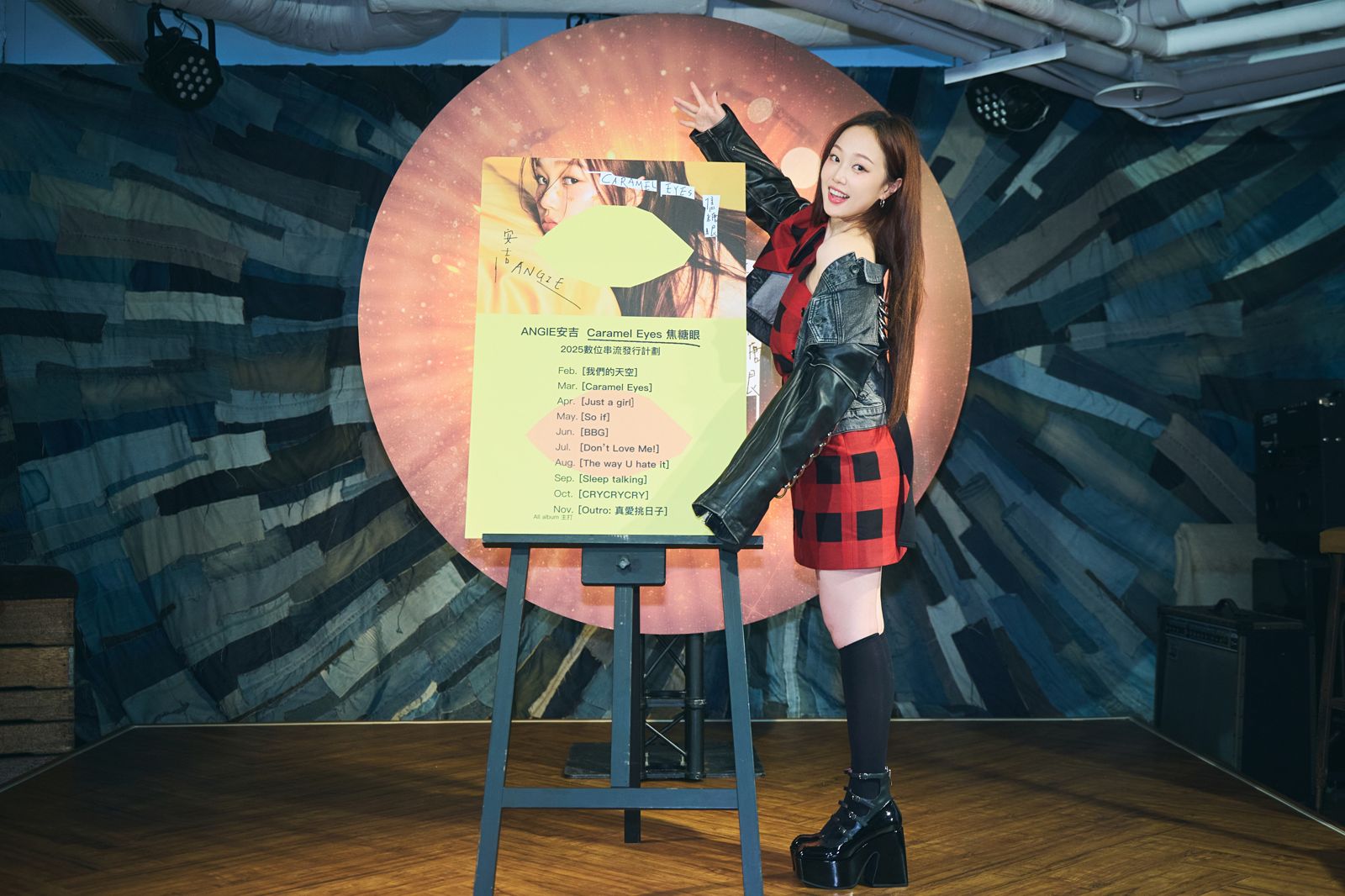 ANGIE安吉舉辦第一張個人全創作專輯《Caramel Eyes焦糖眼》的聽歌會,與大家分享她的創作,專輯融合Bedroom pop臥室流行、獨立搖滾與鋼琴人聲,以Demo質感呈現真實的情感。她表示,在睡不著的夜,在自己的房間情緒會變成霧氣籠罩,理智失焦、感性潰堤,隔天早晨,霧氣會凝結成一顆顆焦糖色的琥珀,於是每一段迷惘、不安、徬徨、懷疑、失序,都被定格成琥珀的記憶《Caramel Eyes 焦糖眼》,這些令人煩躁的小傢伙,在夜裡會眨眼、隱隱發亮,吵得她只好在鋼琴前,寫出一首又一首歌來,她說:「擁抱情緒,其實也是擁抱自己。」她把歌曲製作成企劃案,到公司會議室放給同事聽,大家發現她和上一張EP不一樣了,她依然甜美的外表下,內心情緒複雜許多,變得更敏銳,並觸碰那些無人抵達的情緒末梢,於是立即決定讓安吉這些甜蜜的痛苦成為一張專輯。