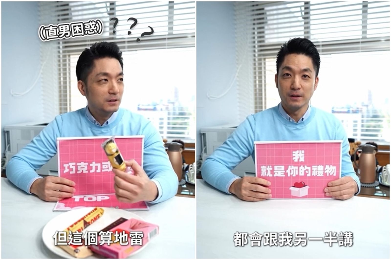 蔣萬安在IG發布影片,分享了網友心目中情人節五大地雷禮物,前五名分別是馬克杯、拼圖、化妝品、巧克力或零食和娃娃。