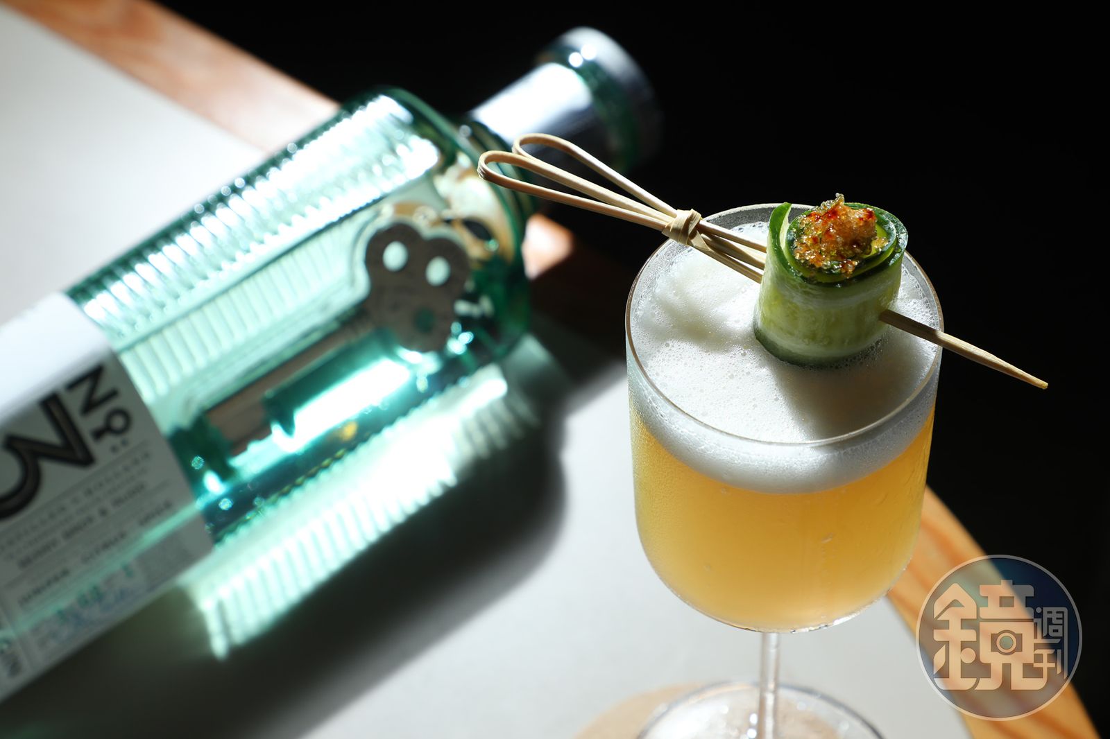 白茶」選用香瓜與四季春的茶韻和玄米茶的微量油脂,搭配炙燒焦糖小黃瓜捲,呈現台灣豐富的瓜果風味。(380元/杯)「胭脂」酸甜中帶有木質調的沉穩,尾韻以肖楠木的香氣作結,層次分明。(380元/杯)身兼咖啡師與調酒師的Evans,將咖啡調酒的風味發揮得極為出色。「白茶」選用台灣瓜果,融合四季春的茶韻和玄米茶的微量油脂,搭配炙燒焦糖小黃瓜捲,口感豐富多變。「胭脂」則以化核應子和洛神為基底,滴入肖楠木酊劑,酸甜中帶有木質調的沉穩,初入口是蜜餞般的明亮酸度,尾韻則以肖楠木的香氣作結,層次分明。