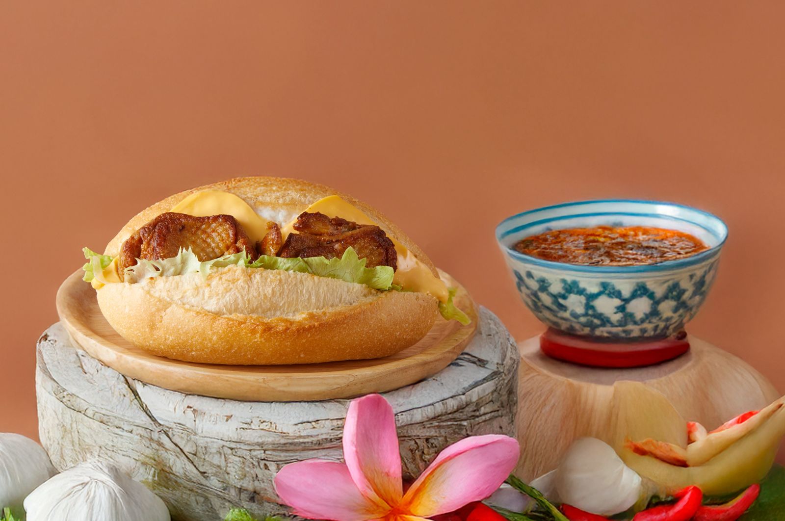 將保鮮冷凍的晴朗家烘焙外皮酥脆、內裡柔軟法棍麵包,與城市漢堡金黃酥脆的去骨雞腿排覆熱後,只要淋上椒麻醬後,那香、麻、辣的多層次風味即能在消費者口中爆發。晴朗家烘焙、城市漢堡兩家業界知名店家之所以會聯手打造美食、公開做法,目的當然趁此推出吸引人的加盟方案,像是好發展壯大自家的加盟體系。
