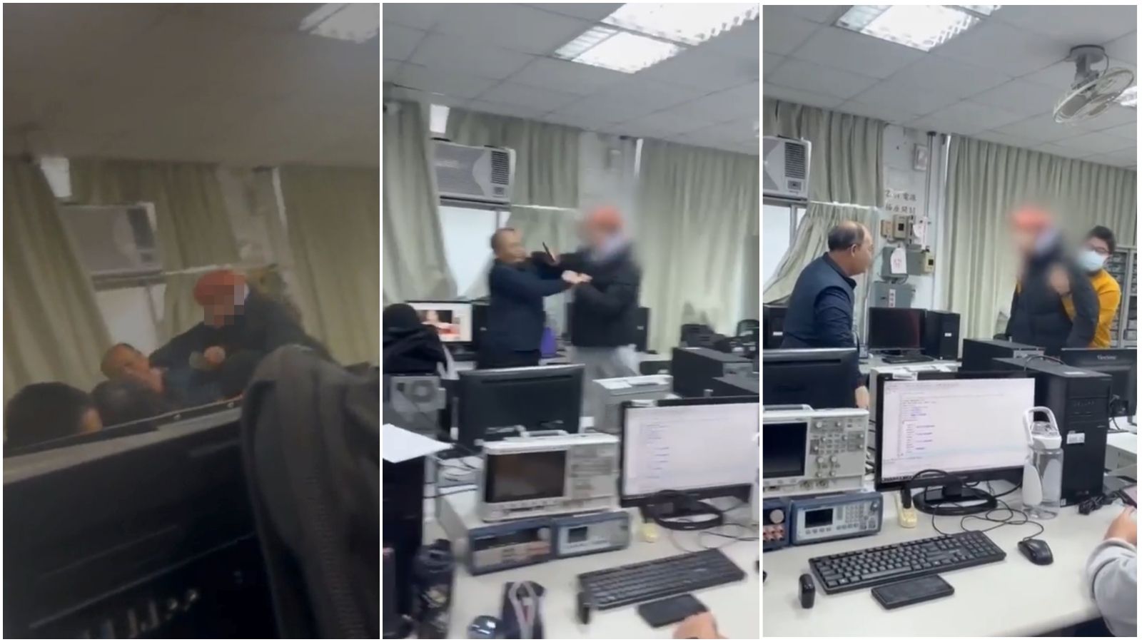 影片中可見1名學生情緒激動,朝比他矮小的男老師臉部暴打,還飆罵「你現在怎樣啊,X三小?」;過程中老師跌倒、眼鏡噴飛,學生被架住後仍不斷叫囂「怎樣?」。