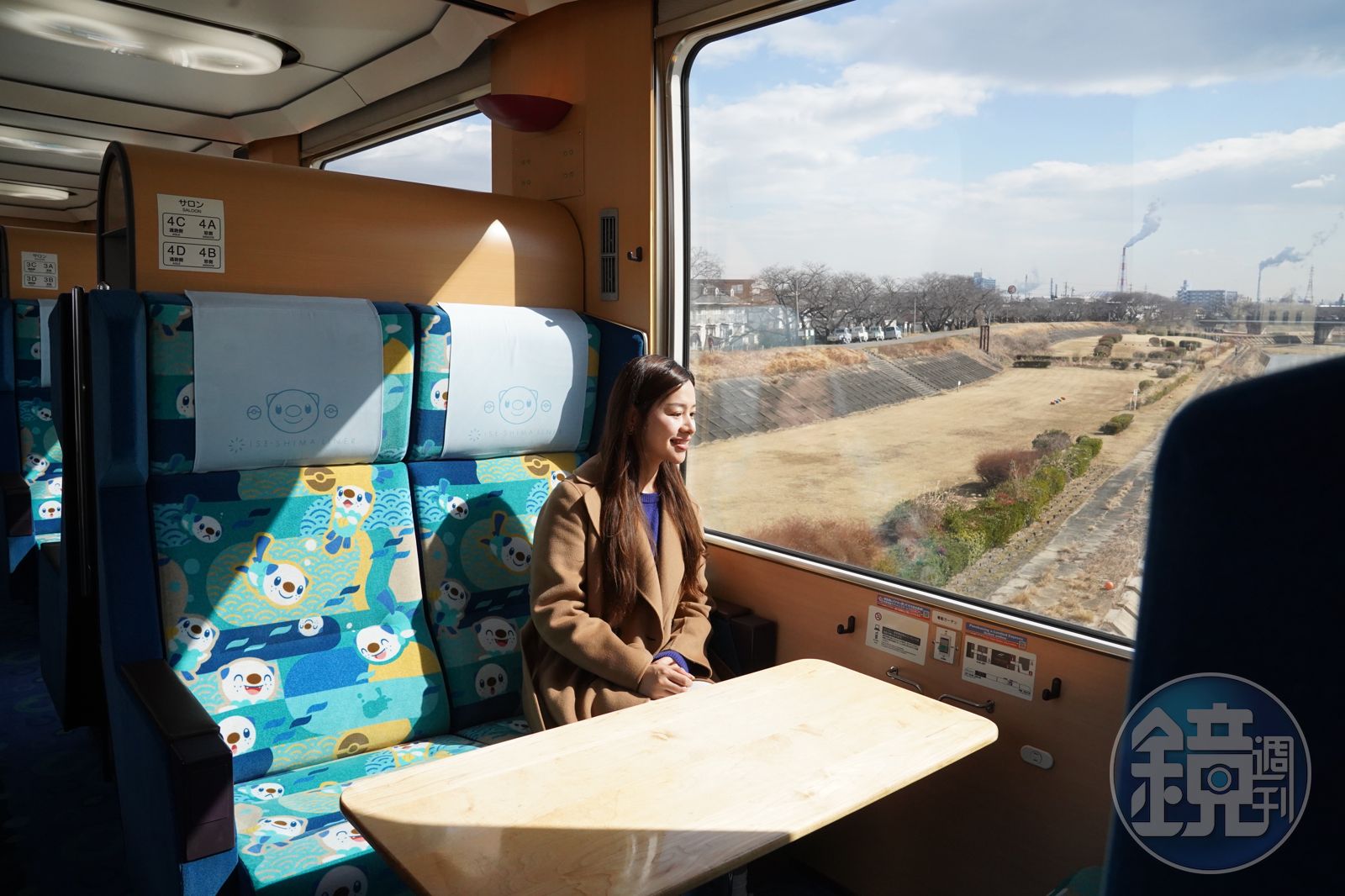 我們幸運趕上了水水獺Liner的試乘會,列車共有六節車廂設計,外觀及內裝充滿了三重聲援寶可夢水水獺,且融入三重縣自然山海意象。普通車廂裡隨處可見搭配不同顏色、具各種表情的水水獺;「沙龍席」則提供舒適雙人桌椅,可以沿途與旅伴面對面分享旅程快樂。