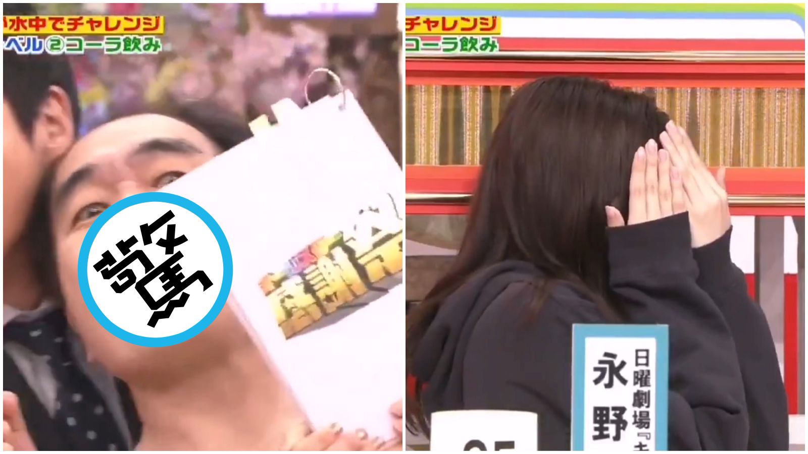 後來永野芽郁不敢再看向江頭2:50,儘管江頭2:50喊說絕對沒有碰她,要她轉過來看他,但永野芽郁仍不停搖頭拒絕;最後也所幸永野沒轉過頭,因為江頭2:50又施展「吐舌」絕技猥褻她。