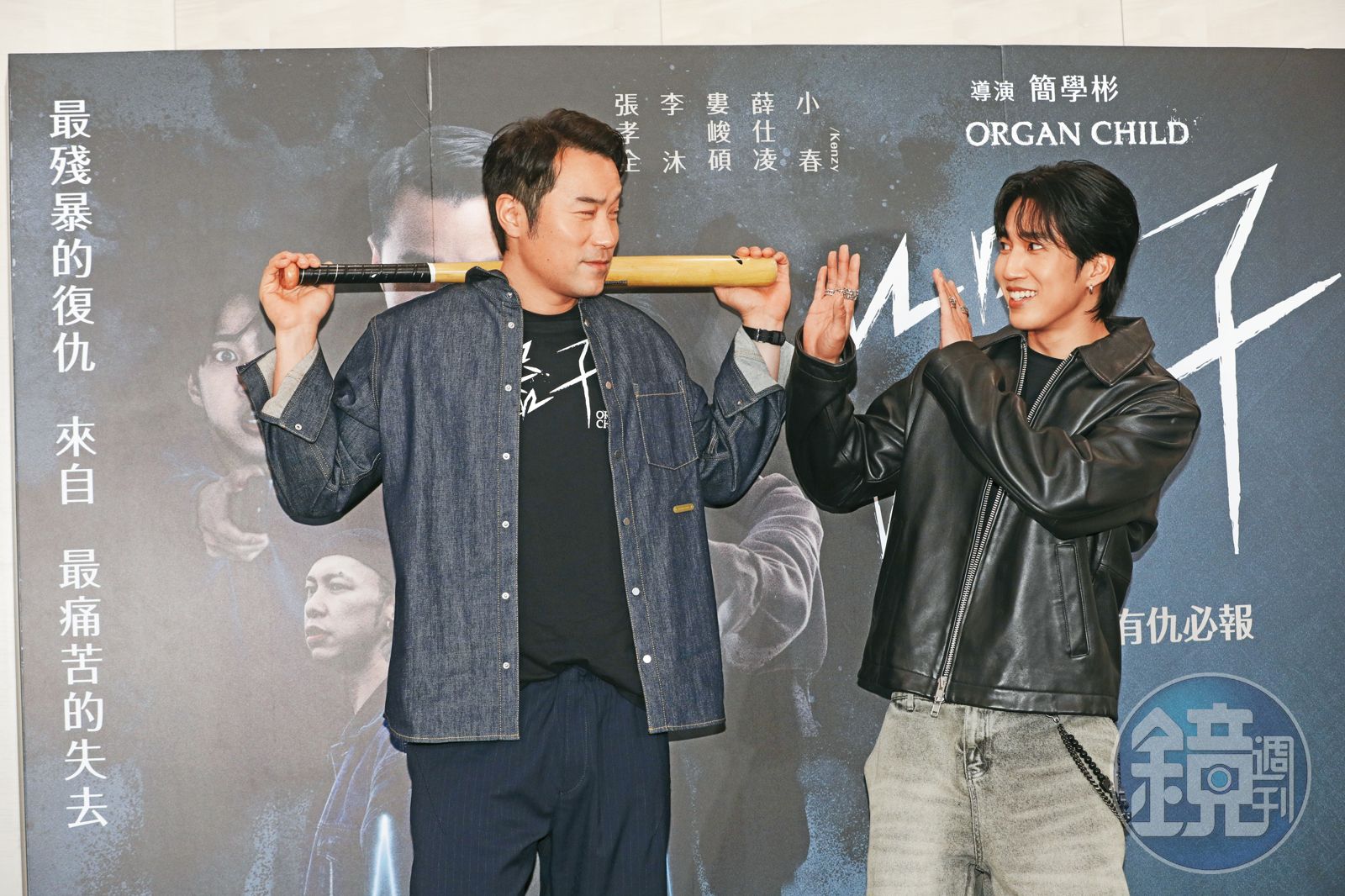 張孝全(左)拿出球棒,婁峻碩(右)是在怕三小…朋友,一起打棒球頭好壯壯啊。