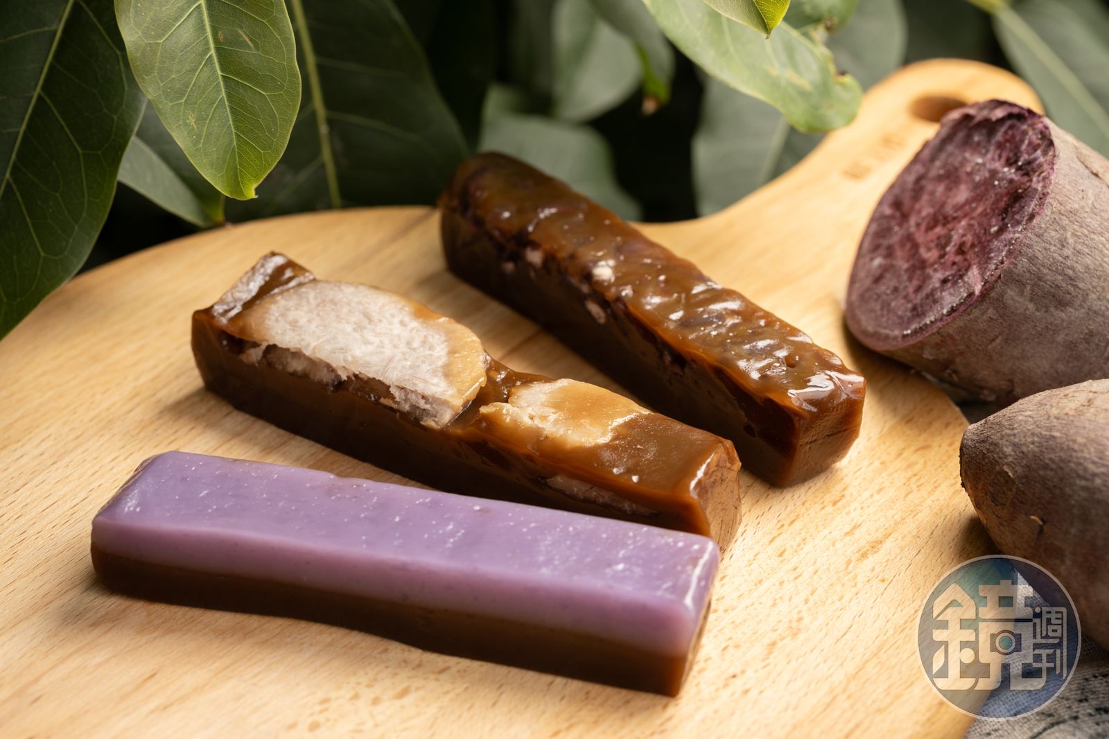 口味也從原先的黑糖基本款,延伸出「黑芝麻」「抹茶」「山藥」「南瓜」「薏仁」等十多款,其中又以「紫地瓜」最有人氣,使用屏東在地小農栽種的紫心地瓜,吃起來像是水潤版不黏牙的年糕,地瓜的香氣與淡淡甜味相得益彰非常耐吃,連藝人許效舜吃了都忍不住掃貨,東港限定的午茶點心,真的不能買太少,以免回程路上就空盒了。