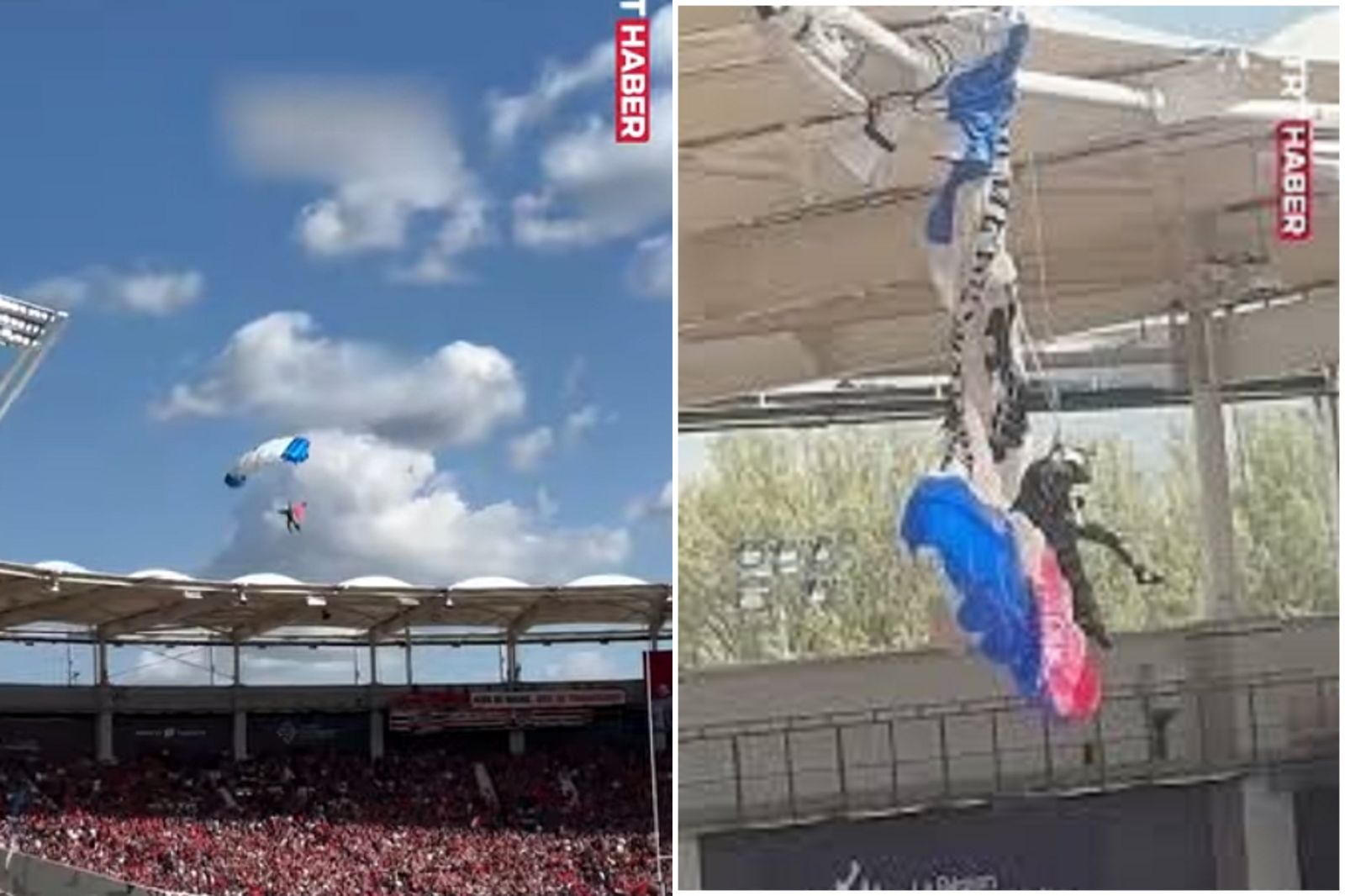 據英國《每日郵報》報導,當天下午4時左右,整準備進行歐冠盃橄欖球賽16強比賽,由圖盧茲隊(Toulouse)對陣塞爾鯊魚隊(Sale Sharks),大會更在現場舉行跳傘開幕式。現場可見有3名跳傘人員進行演出,雖然第一位與第二位都順利降落,但第三位跳傘人員亞尼克(Trouille Yannick)卻跳傘失敗,隨後亞尼克整個人被卡在球場屋頂邊緣,並在空中懸吊,險象環生,也嚇壞現場觀眾。