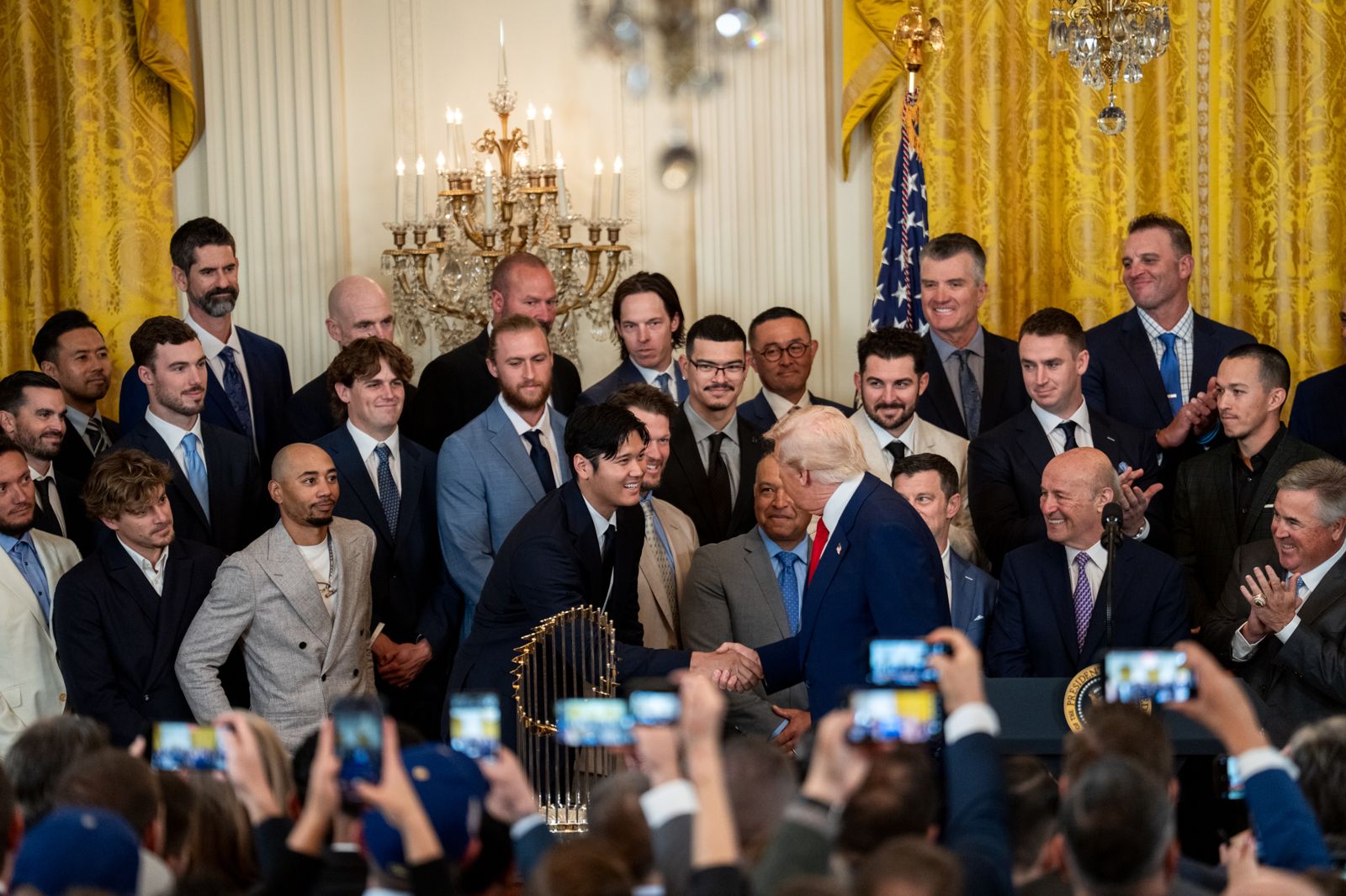 川普近日對各國宣布「對等關稅」,讓許多國家哀鴻遍野,更掀起了全球股災,近日他仍照往常行程,按慣例邀請去年獲得MLB世界大賽冠軍的隊伍到白宮接受表揚。