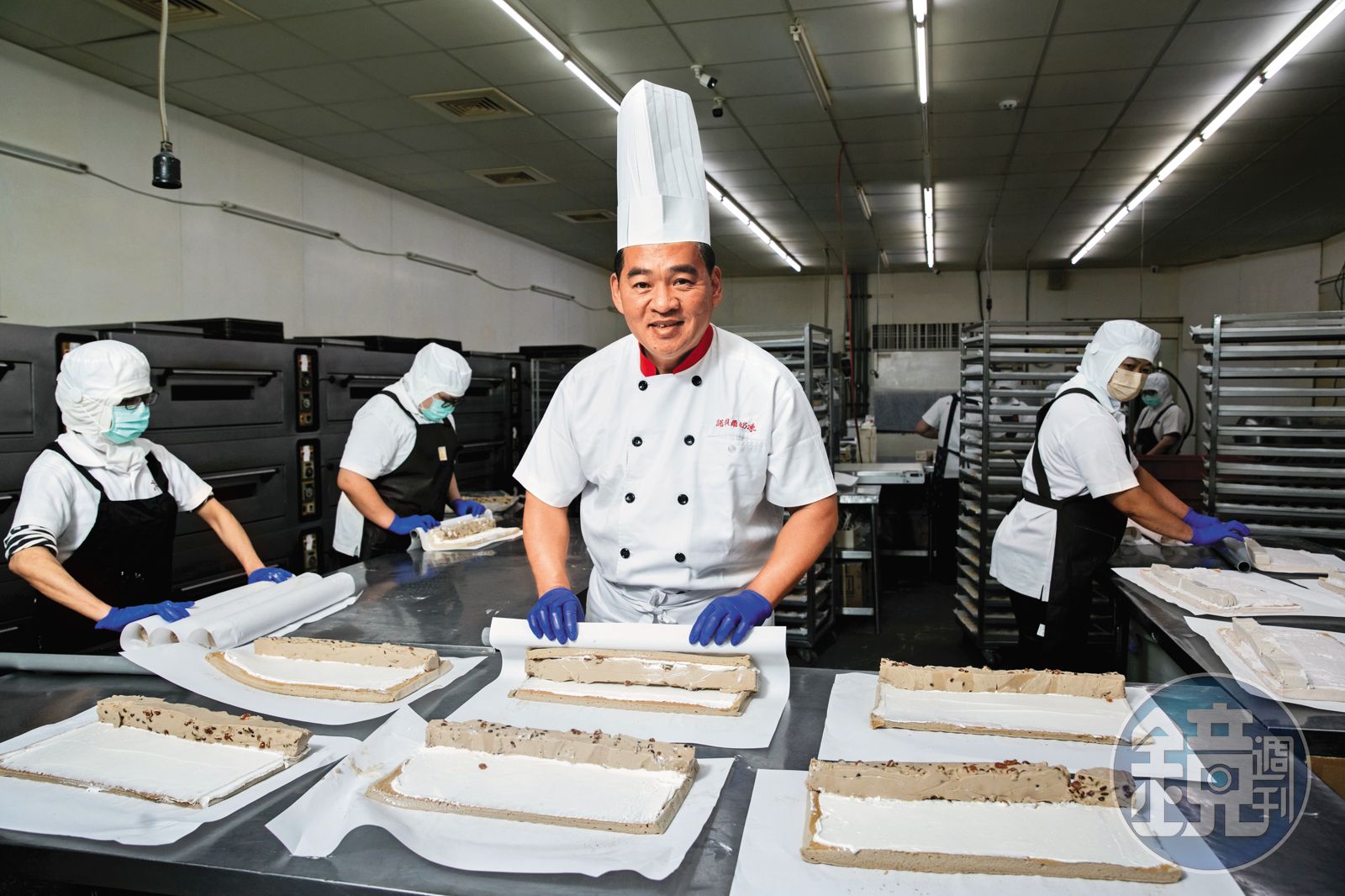 53歲的張智聰見客人滿載而歸,大眼彎成微笑曲線,「我們奶凍捲已經熱賣18年,現在生意維持穩定水平,我沒有跟遊覽車配合,但他們客人會指定要來我們店。」相較於裝飾花俏的甜點,奶凍捲外表樸實無華,綿密輕盈的戚風蛋糕體內,捲著鮮奶油和Q滑奶凍,口感介於奶酪與起司之間,甜度不高,已是宜蘭伴手禮代名詞,諾貝爾每日至少賣上千條,一款熱賣商品,讓張智聰在羅東、礁溪、蘇澳共開3間店,年營收至少1億元。