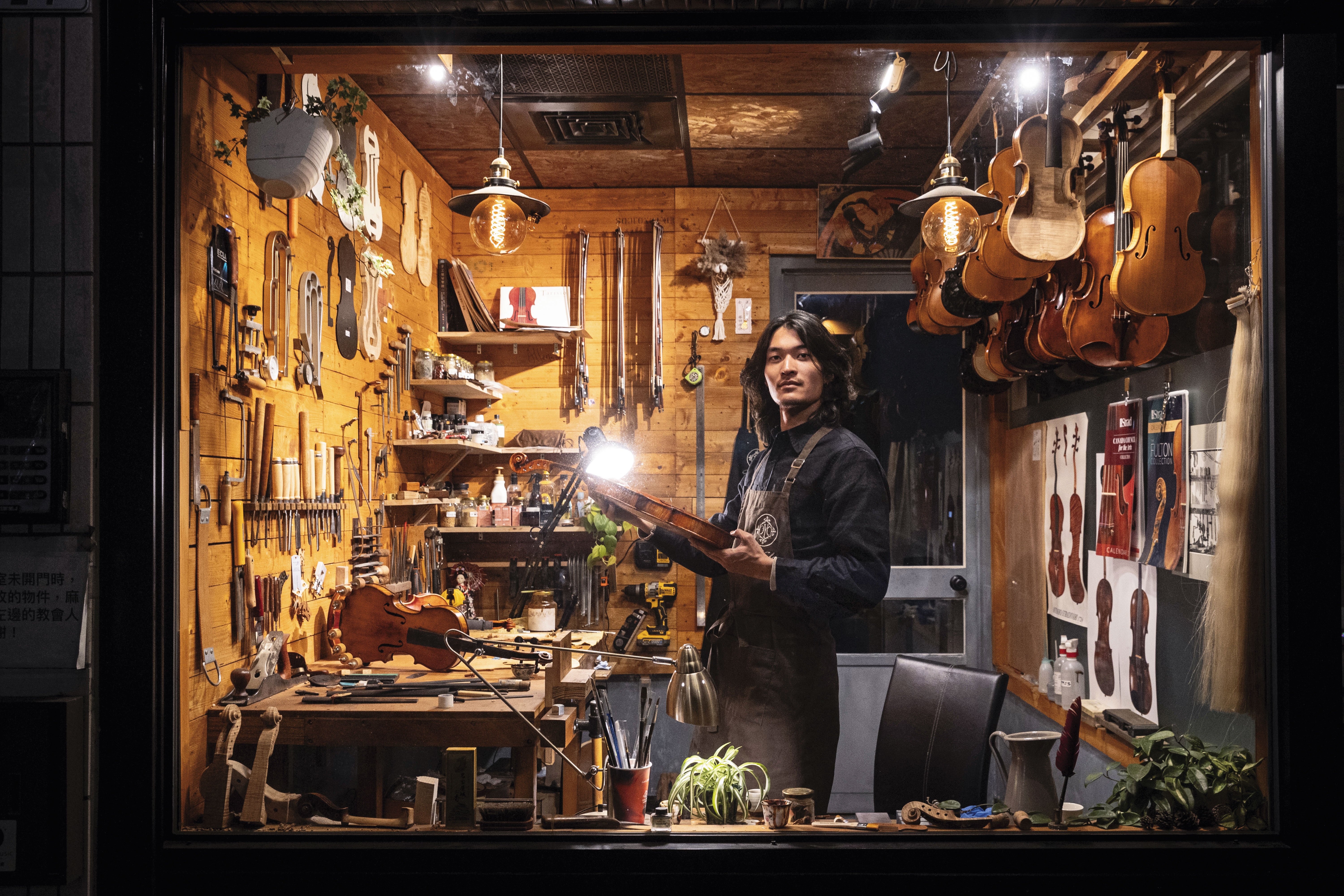 去年,一位小提琴老師問我要不要去他的音樂教室修琴兼幫忙接電話,他挪出教室一部分讓我當工作室,不收租金還付我薪水,他說這樣學生修琴也方便。我好驚喜,花了一個月把工作室打造成自己的夢想空間,只用3萬元,我跟爸爸一樣熱愛手作。
