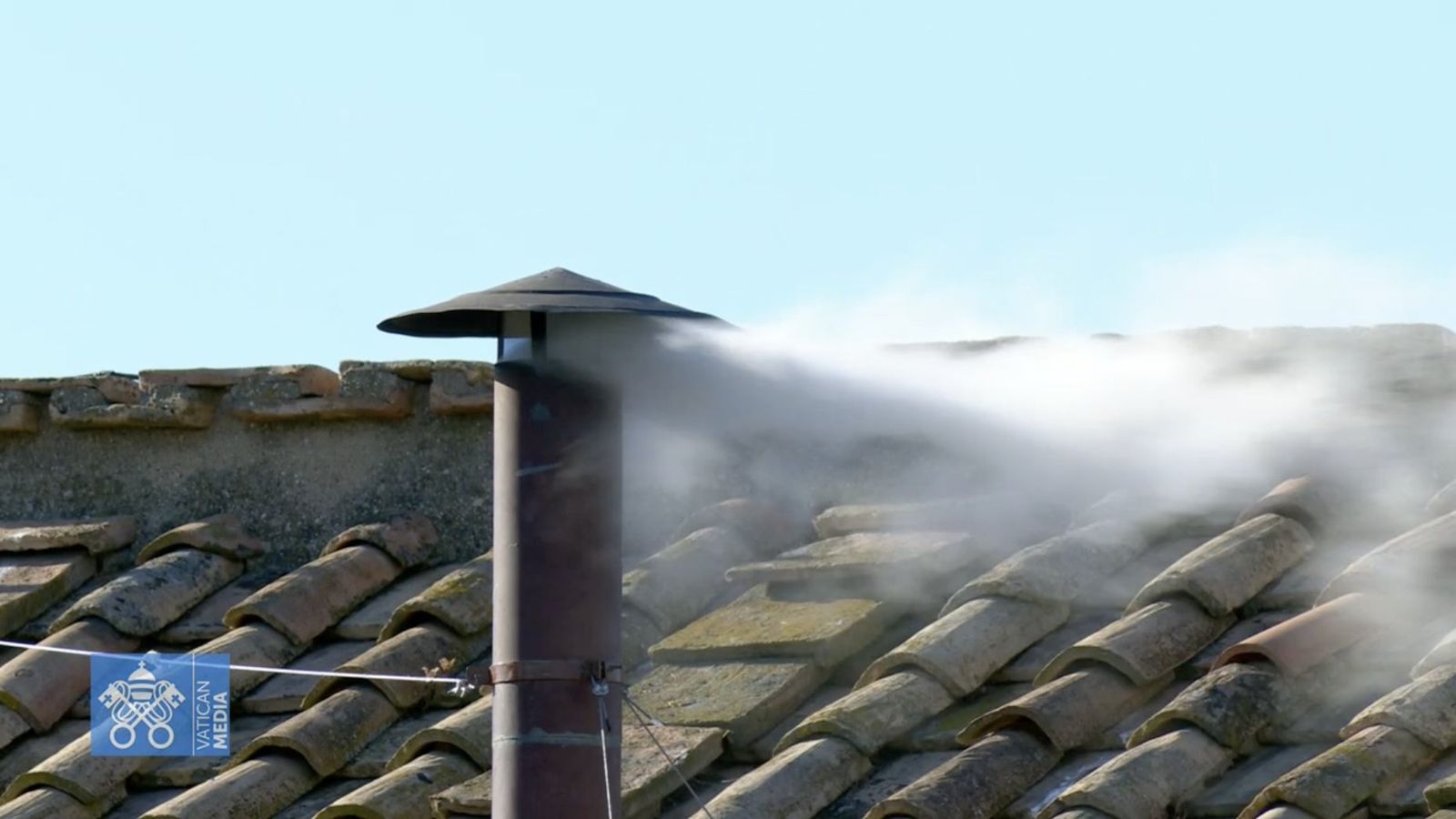 西斯汀禮拜堂冒出白煙,代表出新教宗。(翻攝VaticanMedia畫面)發布時間:2025.05.09 00:25 臺北時間
