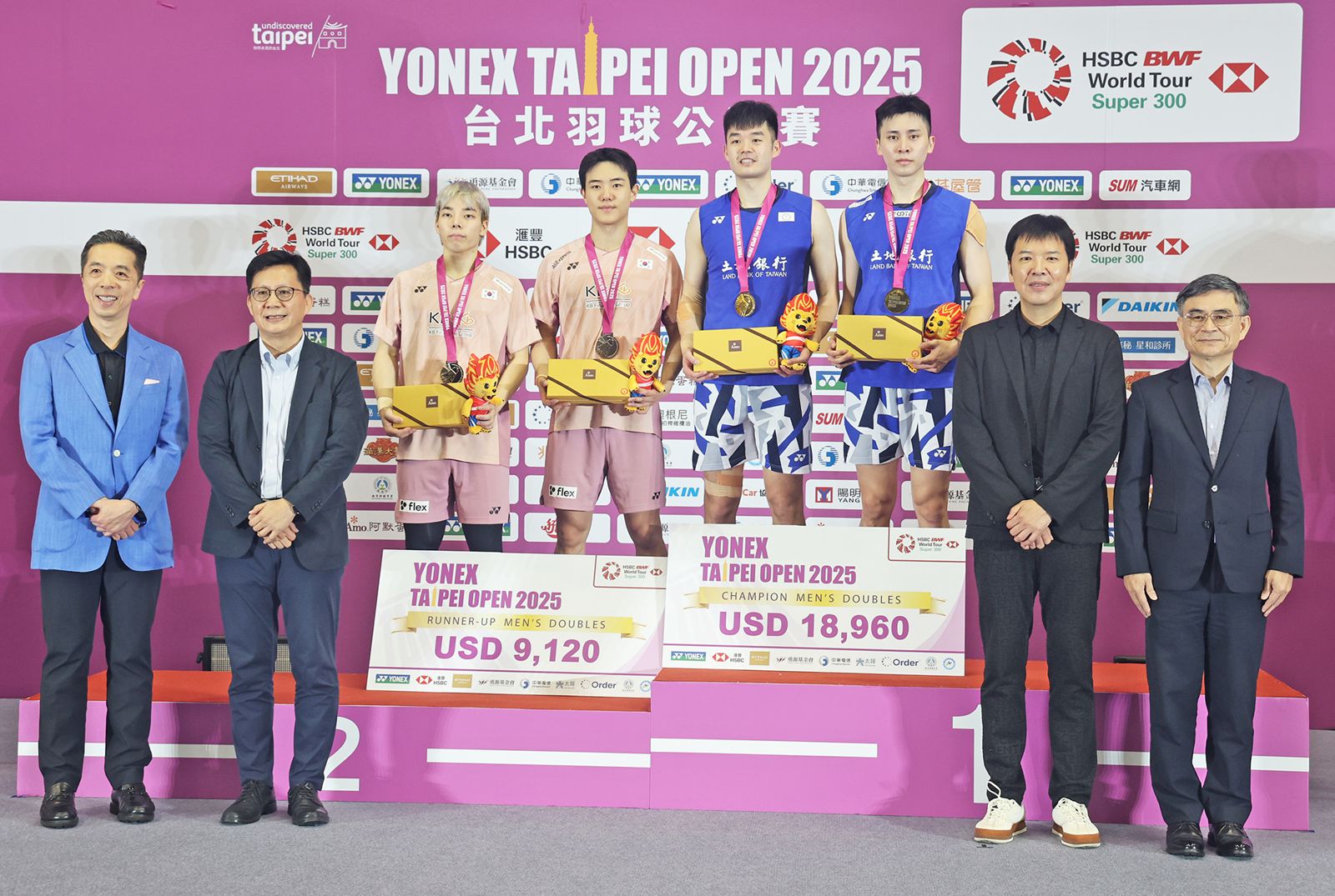 本屆最令人振奮莫過於台灣女雙終結長達17年的冠軍荒!由謝沛珊/洪恩慈在決賽中以直落二擊敗日本強敵,拿下生涯首座超級300冠軍。這不僅是兩人搭檔以來最具代表性的勝利,更是台灣女雙睽違17年,首度於台北公開賽奪冠,寫下振奮人心的紀錄。男雙賽場由王齊麟/邱相榤以直落二擊退南韓強敵,成功捧回冠軍獎盃。這是兩人搭檔後首度於超級300封王,展現接班氣勢與穩健實力,也為台灣男雙連續第二年留下冠軍。