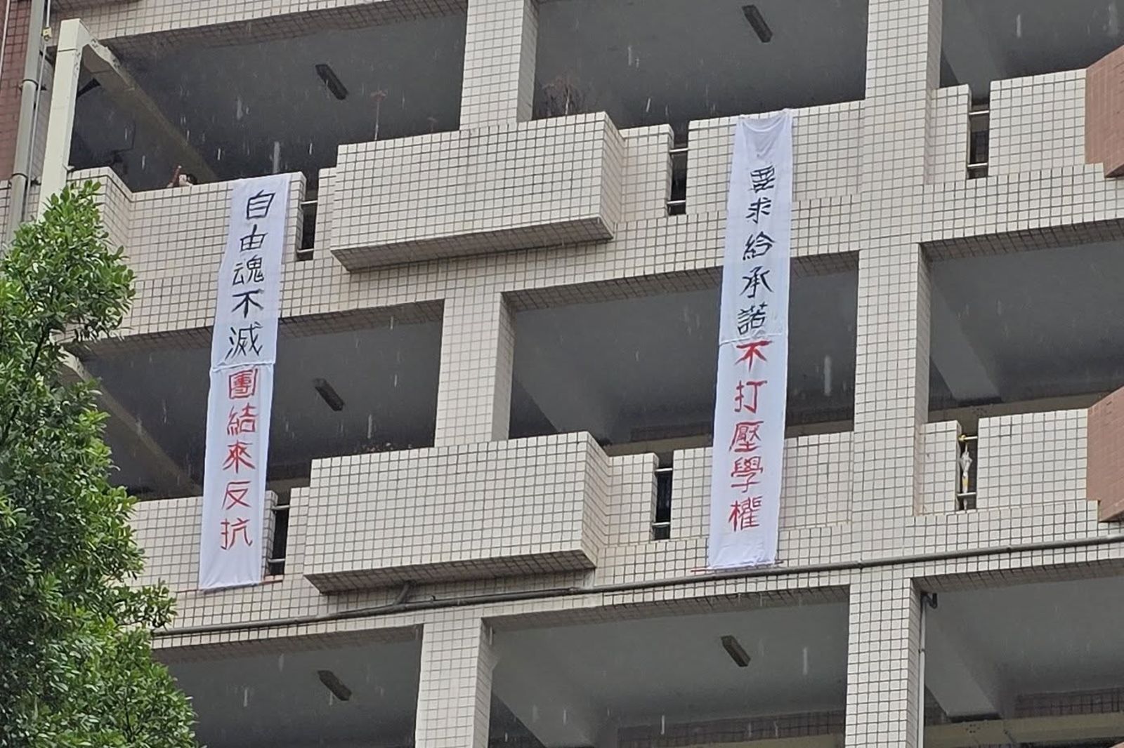 板中學生質疑劉淑芬「收手機換成績」的管理方式,將對板中自由學風造成打壓,甚至在10日校慶大樓外掛布條抗議,寫下「威權校長」「若獨裁就滾出板中」「要求給承諾不打壓學校」等內容強硬表態。