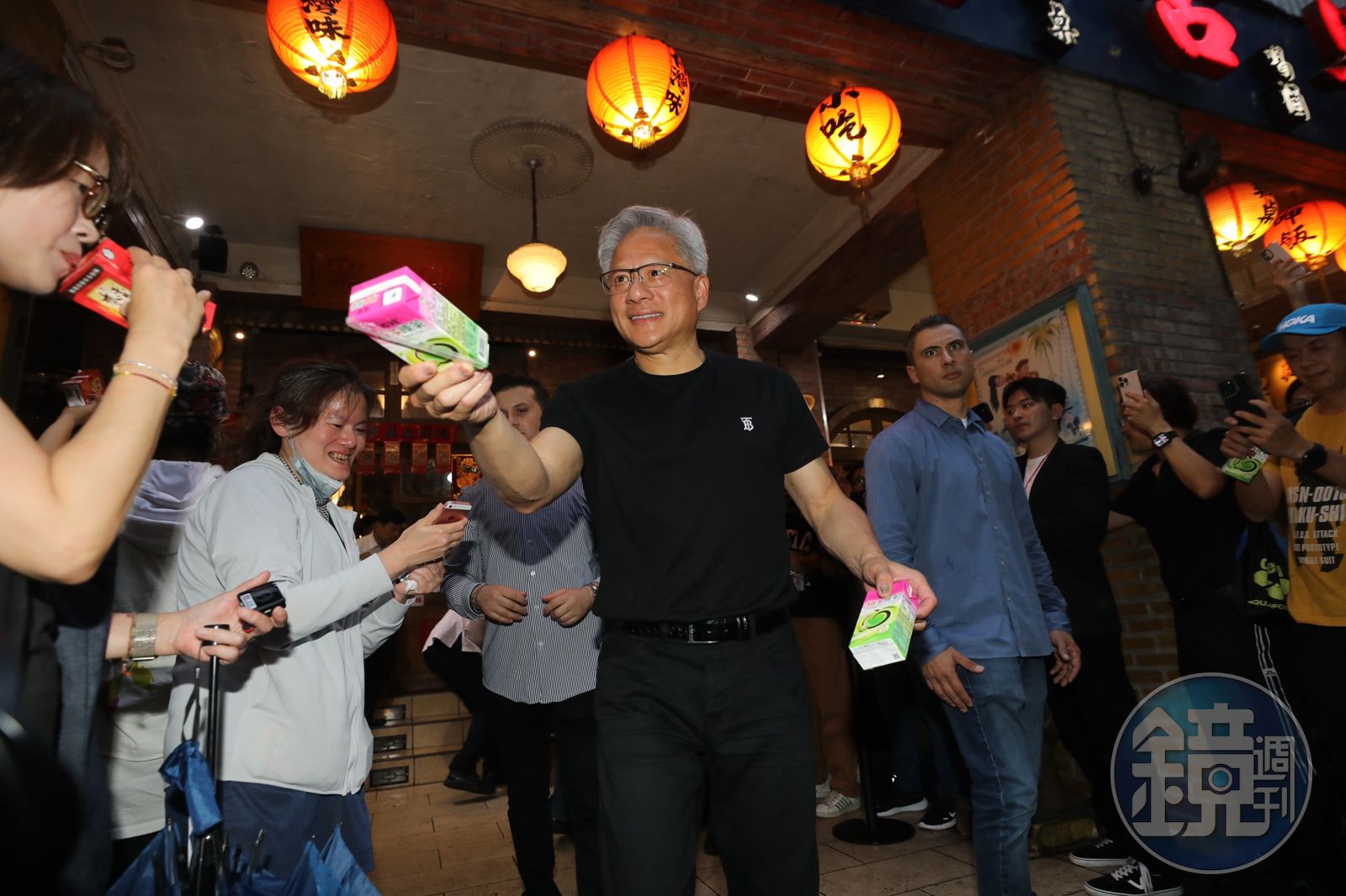 黃仁勳魅力可謂是老少通吃,現場有多位學童特地拉著爸媽到「兆元宴」現場,喊著「我要請Jensen簽名、Jensen選我選我!」,甚至製作手舉牌要吸引黃仁勳的注意。黃仁勳也知道現場有大批守候的民眾,更主動於用餐前主動發送飲品給現場的粉絲與媒體,離開餐廳前,還多次抽空為粉絲簽名留念,讓「兆元宴」場外氣氛像極了粉絲見面會現場。