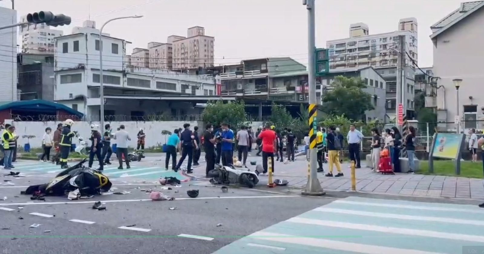 北大國小旁重大車禍,導致多人遭受撞擊,15人輕重傷,其中4人傷勢嚴重當場無呼吸脈搏(OHCA),傷者分別送往恩主公醫院、土城長庚、板橋亞東醫院急救。 據了解,肇事駕駛是一名78歲男性,陷入昏迷,已送醫治療,詳細車禍狀況待釐清。 車禍發生後,相關行車紀錄器畫面也流出,畫面中可見車輛完全沒減速,高速衝撞停等紅燈機車以及過馬路學童,一旁幸運躲過的機車騎士也嚇傻,隨後趕緊停靠一旁安全區域。