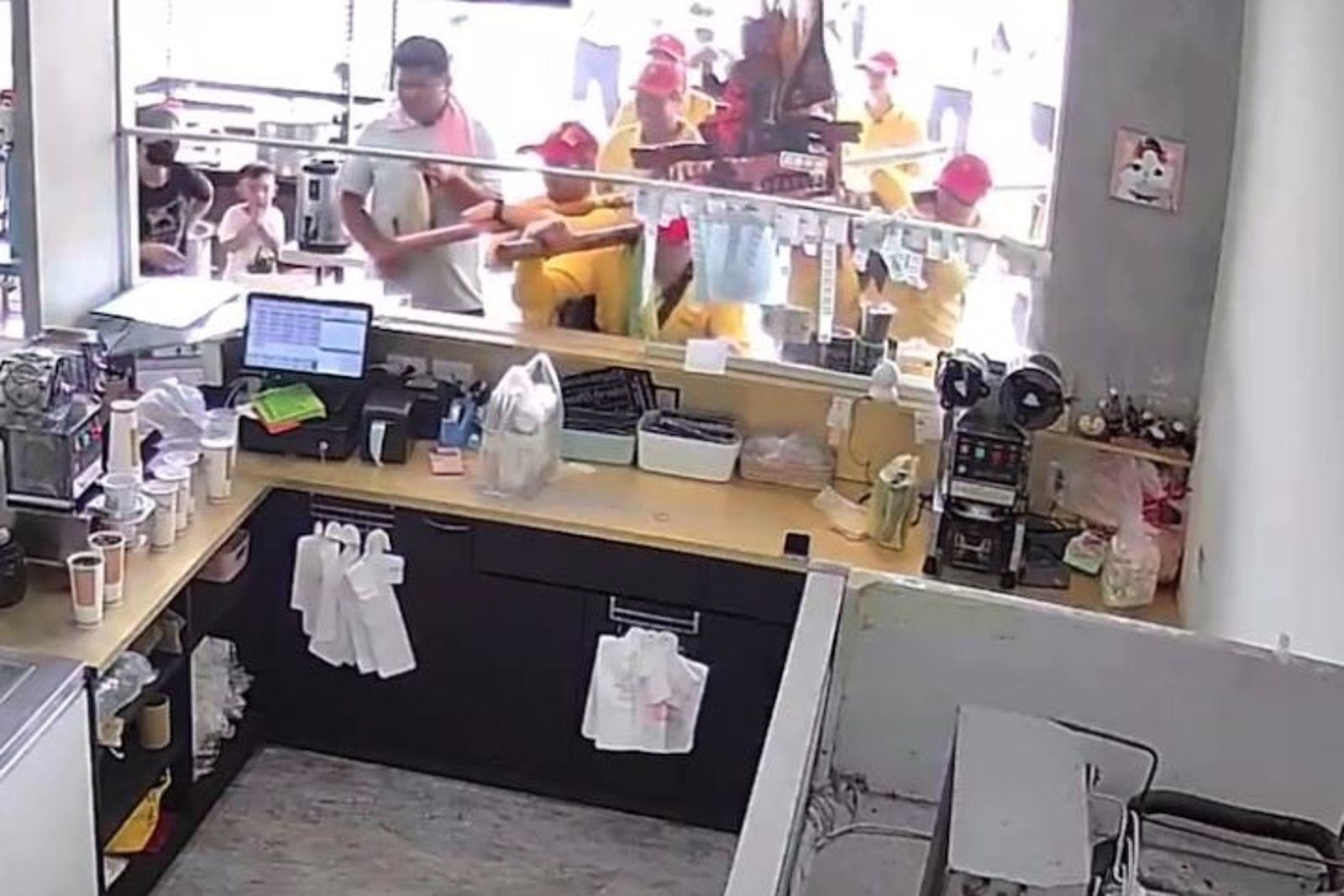 這起意外發生於上週六早上10點多,地點位於西螺福來路上的一家奶茶專賣店。當時神農大帝鑾轎隊伍正進行「巡水田」儀式,隊伍行經該店門前時,神轎突然偏移方向直衝店內,導致玻璃窗當場破裂,連貼在窗上的文宣也掉落。驚險一幕讓在店內忙碌的老闆娘和妹妹嚇了一大跳,隨後她向神明祈求大家身體健康、生意興隆。
