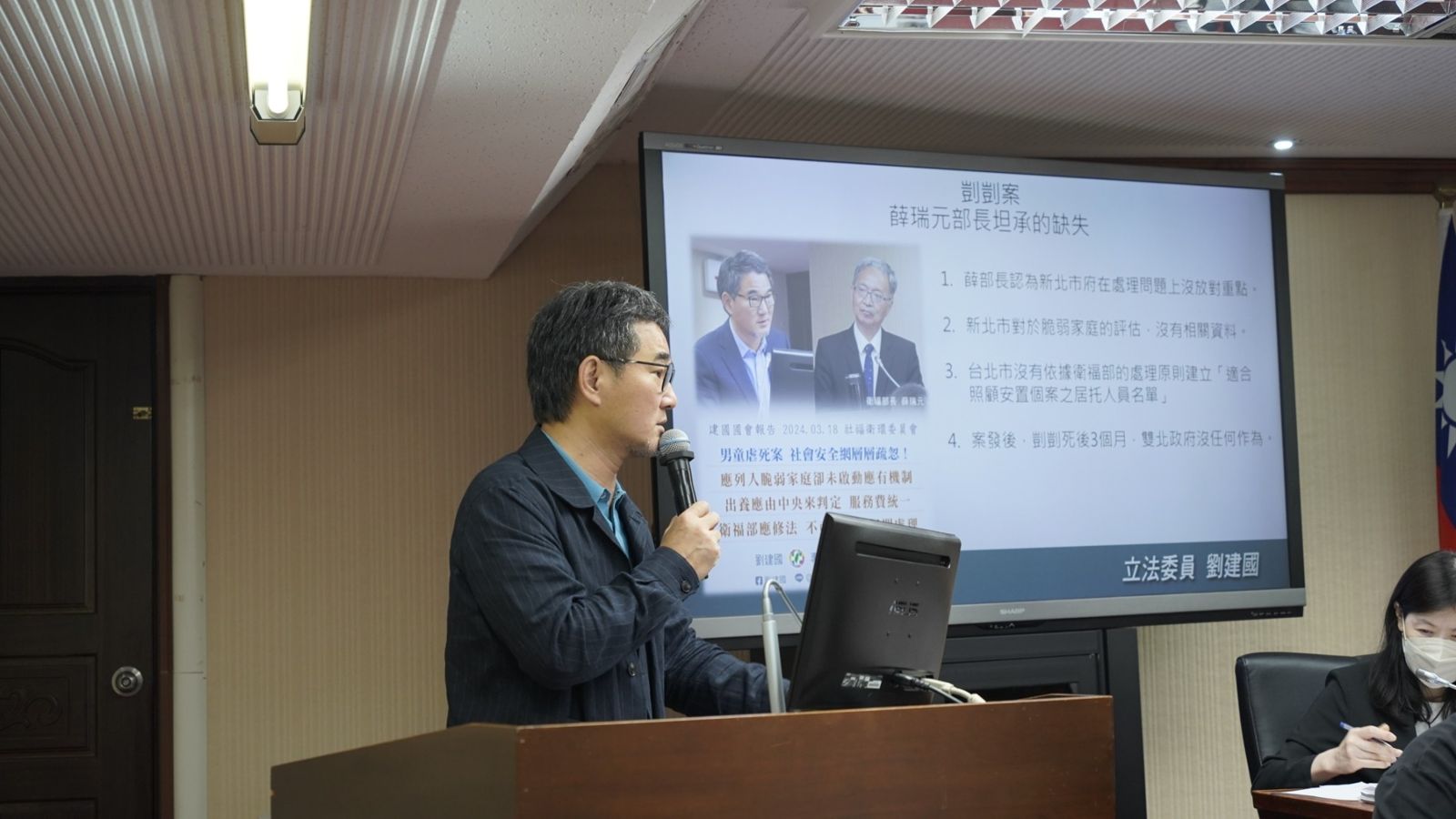 劉建國指出,早在案發當時,他即搜集相關資料質詢前衛福部長薛瑞元,薛前部長也坦承包括新北市府處理失焦、未具備脆弱家庭資料,以及台北市未建立「適合照顧安置個案之居托人員名單」等多項缺失,甚至剴剴過世後三個月,雙北政府仍無任何作為。