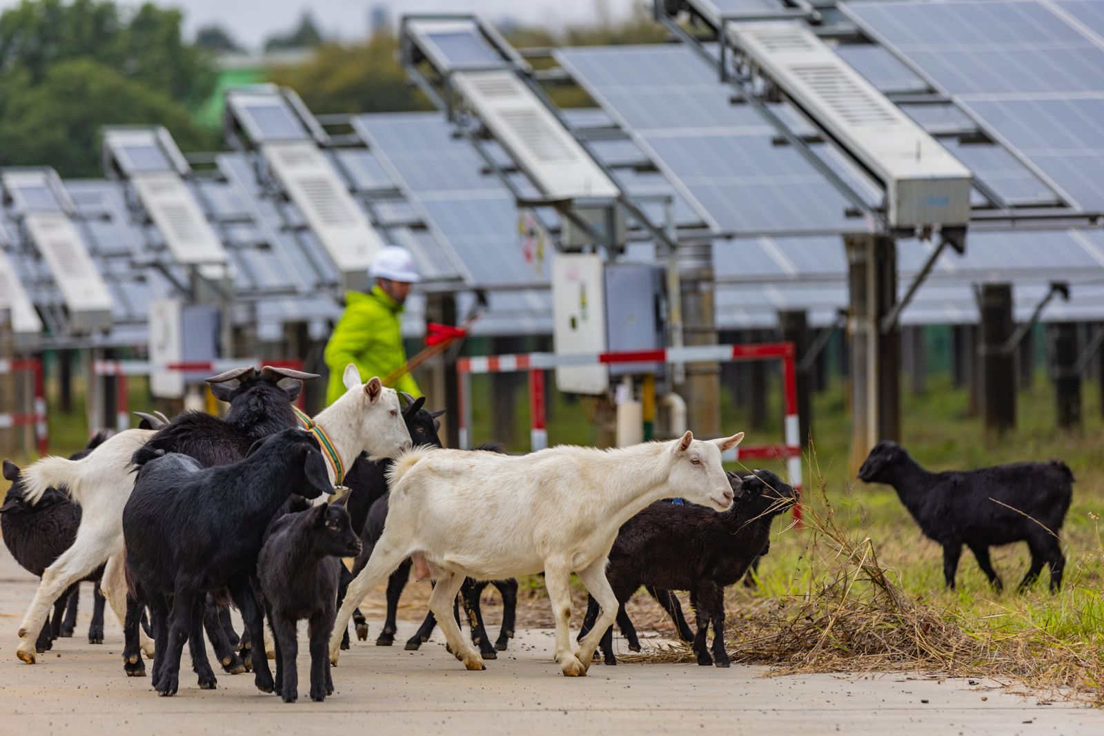 台泥表示,大陸英德廠近年積極建置8兆瓦的光電系統,搭配大陸水泥業界領先的43.2MW/107.3MWh儲能系統,大步邁開能源轉型。同時,台泥也思考如何以自然為本解方 (Nature-based Solutions, NbS)應對大型光電案場的除草任務,並促進生態平衡。英德廠捨棄了使用化石燃料的除草機,以及對土壤有害的化學除草劑,轉而引進羊群進行生物除草。