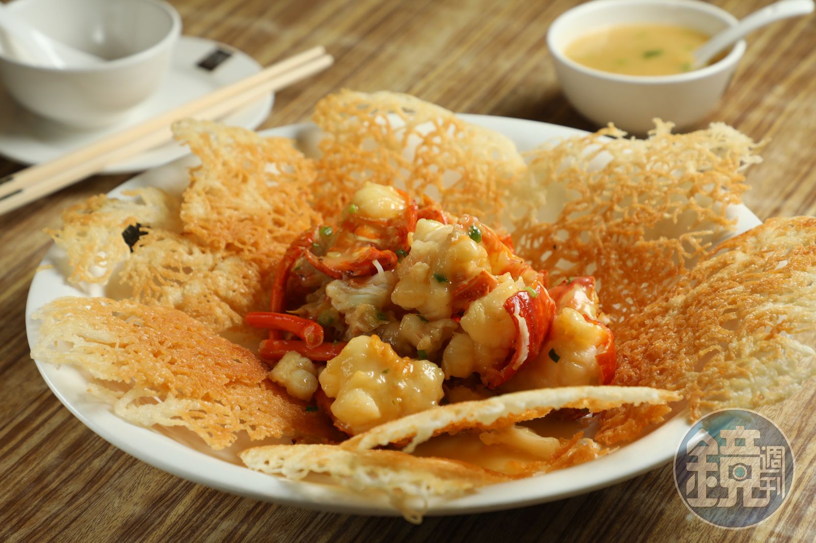 這天橋哥幫我們把明蝦升級成龍蝦,他用半煎炸的方式,將米餅在鑊中炸到定型,即使涼了也酥香脆口,再鋪上被醬汁包裹的超大粒龍蝦肉。吃的時候可以在米餅淋上一點勾芡醬汁,再和龍蝦一起入口,那種幸福感,簡直猶如上天堂了。