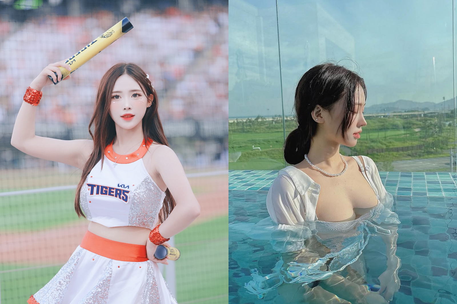 韓國職棒起亞虎啦啦隊女孩李素敏年僅19歲,出道不到1年,擁有超高人氣。(合成圖,左翻攝自Instagram@photo_dosa、_s._.s_0)發布時間:2025.06.18 15:43 臺北時間