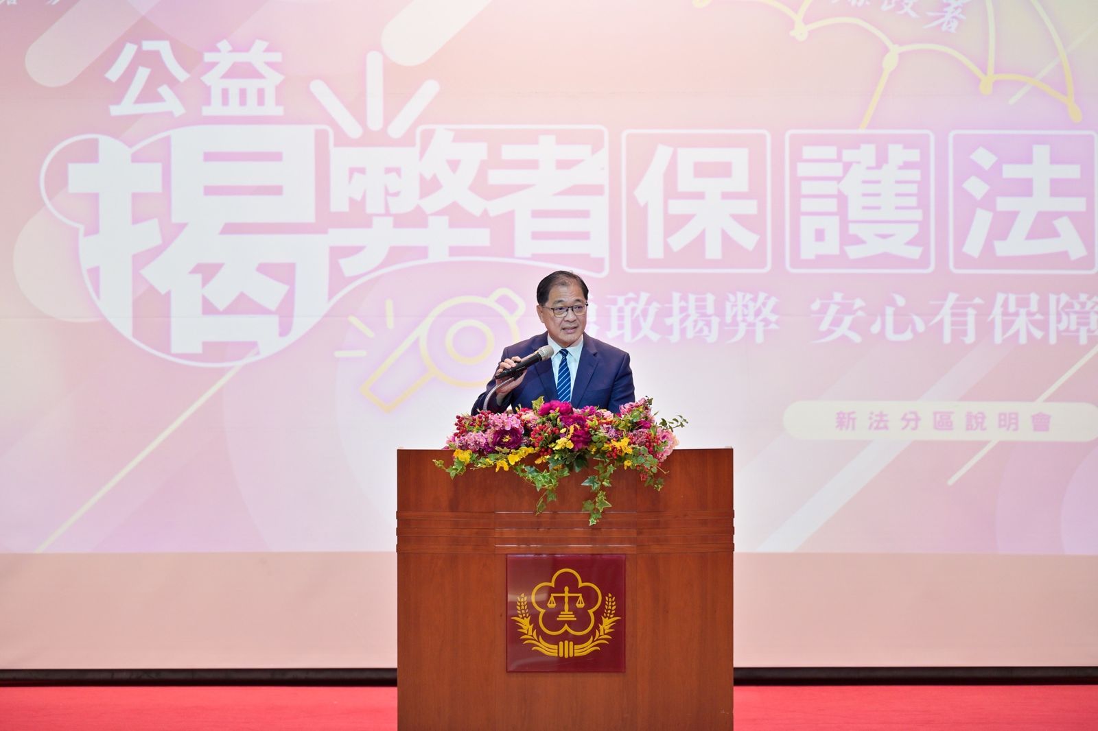 法務部長鄭銘謙於會中致詞表示,保護揭弊者是法務部一貫的政策方向,新法施行後不僅是揭弊保護制度的重大里程碑,更是推進廉能治理的重要措施。
