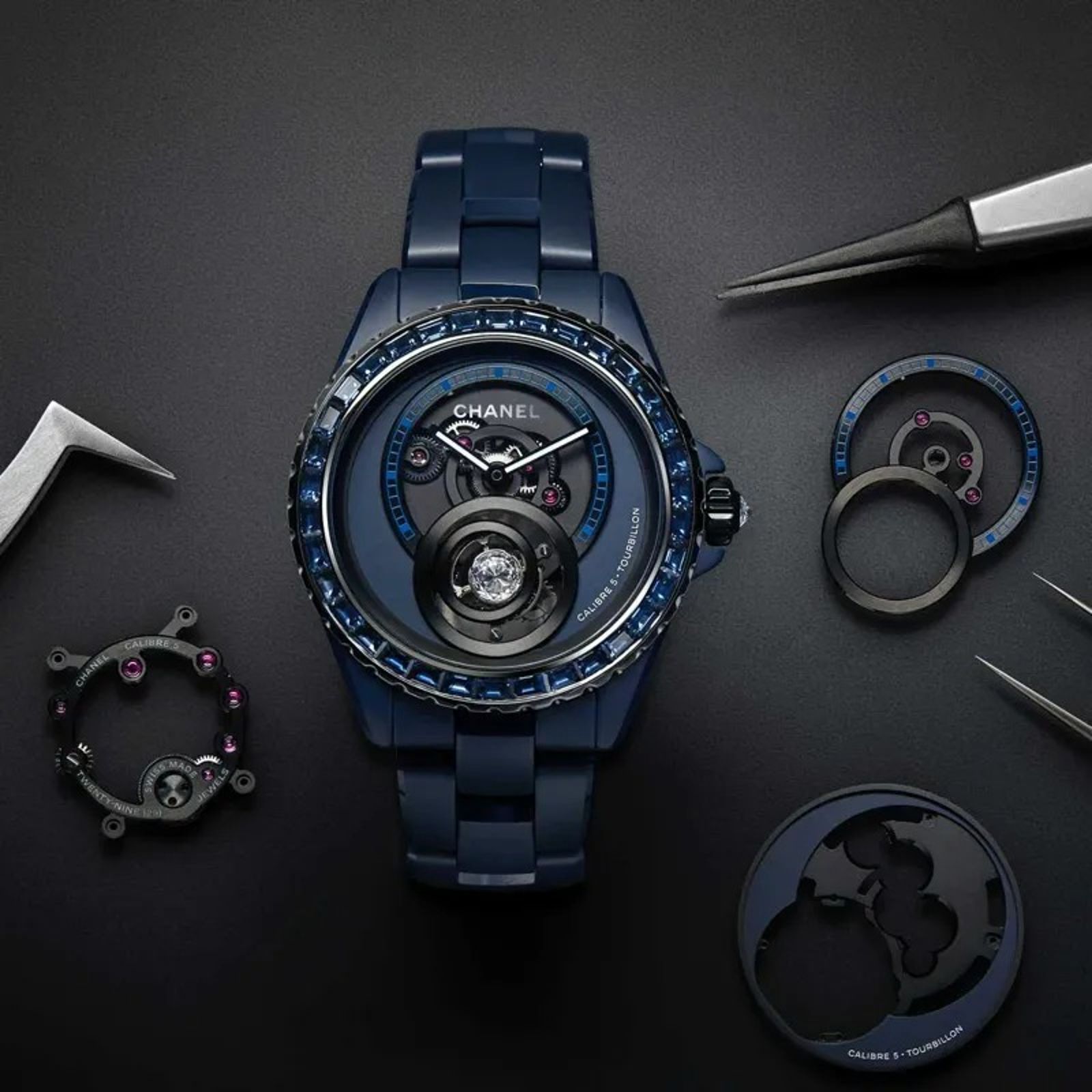 2015年J12 Mirror運用高鏡面拋光陶瓷重新詮釋造型主張,2016年Skeleton Flying Tourbillon則轉向機芯可視化與結構美感。2020年J12 X-Ray以全藍寶石錶殼與鍊節挑戰透明材質極限。2022年Diamond Tourbillon以飛行陀飛輪中央鑲嵌鑽石為視覺焦點,強化工藝感與奢華語境。