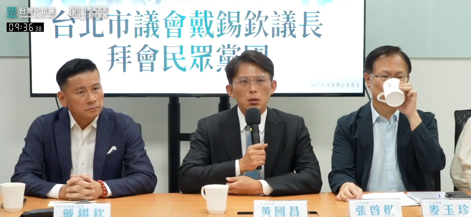台北市議會戴錫欽議長拜會民眾黨團,與會人員包括民眾黨主席黃國昌、黨團副總召張啓楷、民眾黨立委麥玉珍、台北市議員張志豪、黃瀞瑩、陳宥丞、林珍羽、民眾黨新聞部主任吳怡萱、民眾黨立院黨團副主任陳思宇。