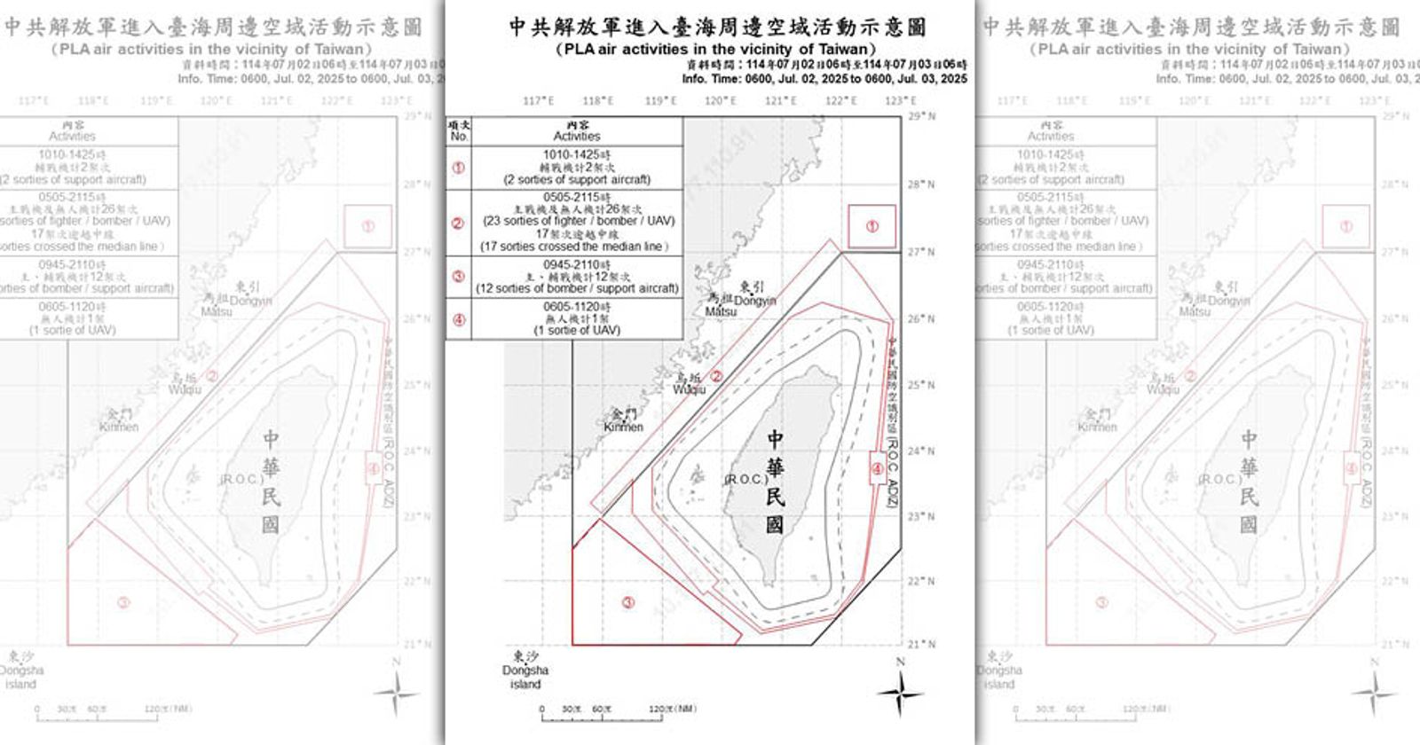 根據國防部公布的最新消息,從昨天清晨到今天清晨,供偵獲中機41架次(其中逾越海峽中線進入北部、中部、西南及東部空域30架次)及中艦9艘,持續在台海周邊活動。 國防部表示,國軍運用任務機、艦及岸置飛彈系統嚴密監控與應處。從國防部提供的示意圖中也可以看到,除了台海中線以西、西南海空域、北方海域外,就連東部都有無人機繞行,對台灣是「四面包圍」的狀態。