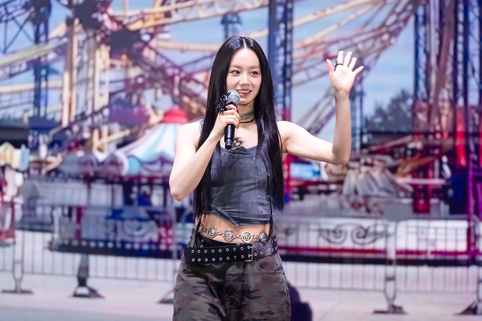 活動現場以遊樂園為主題,設計出多個關卡與挑戰。粉絲特別準備白色dress code應援,還齊聲高喊「惠利加油」,但她第1關釣瓶子失利、第2關射瓶子也出糗,不過全程表情豐富、帥氣pose滿分,最後竟意外完成任務,開心直呼:「我成功了!」她在顏色問答關卡也努力以中文作答,一口氣說出「白色、藍色、紅色、綠色、黃色、紫色、黑色」等7種顏色,還即興請粉絲出題,展現超接地氣的親和力。