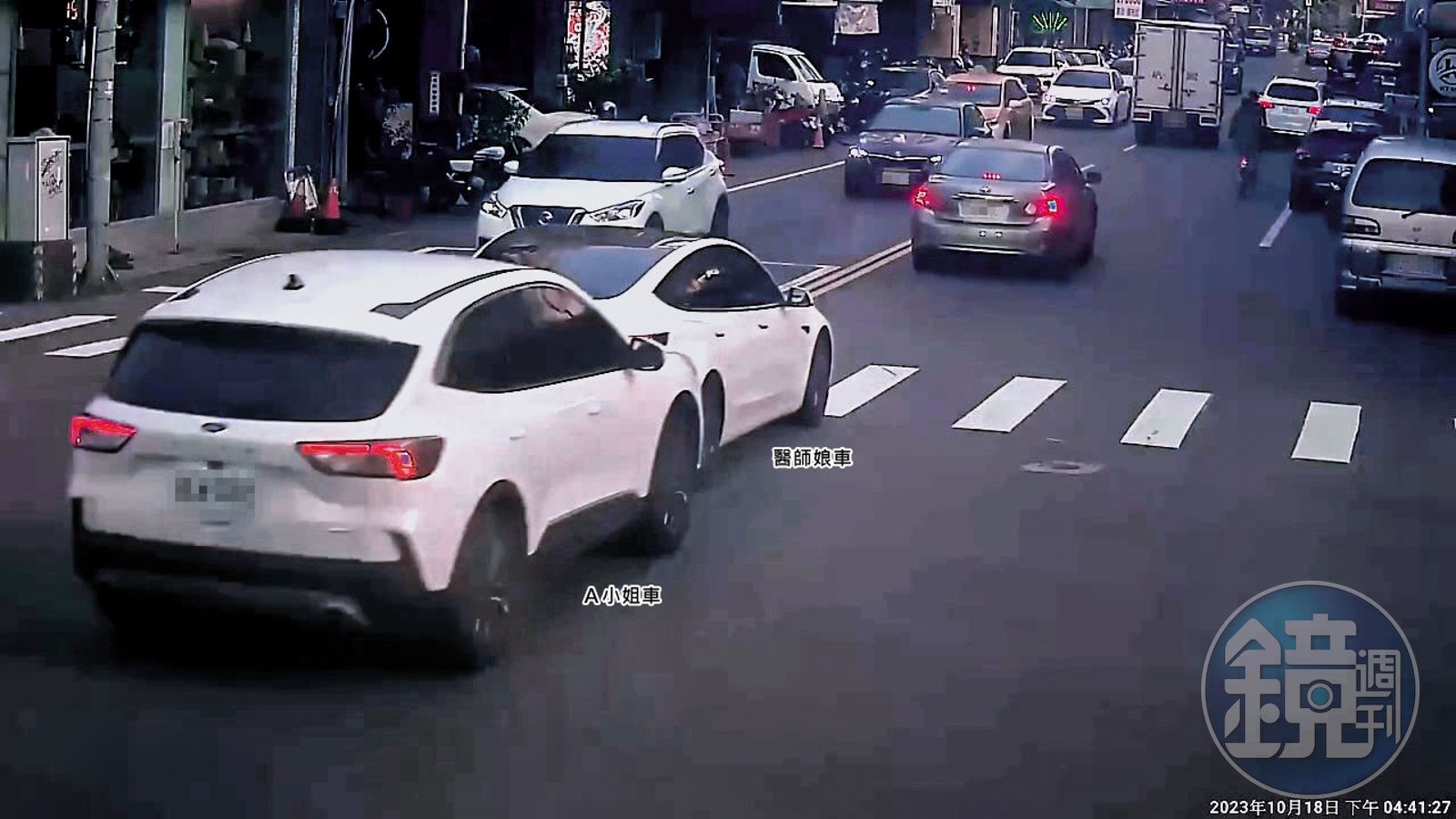 知情人士告訴本刊,A小姐因太過氣憤,後來開車衝撞特斯拉,醫師娘被撞並未停車,接連闖紅燈、跨越雙黃線逆向行駛,最後鑽進巷弄內,擺脫糾纏。這時A小姐見路邊有警察,於是靠邊停車、尋求協助,員警則將癱軟在駕駛座的A小姐扶出並帶回警局,醫師娘隨後打電話飆罵A小姐:「妳有病嗎?幹嘛撞我?」並謊稱車上只有她一人。