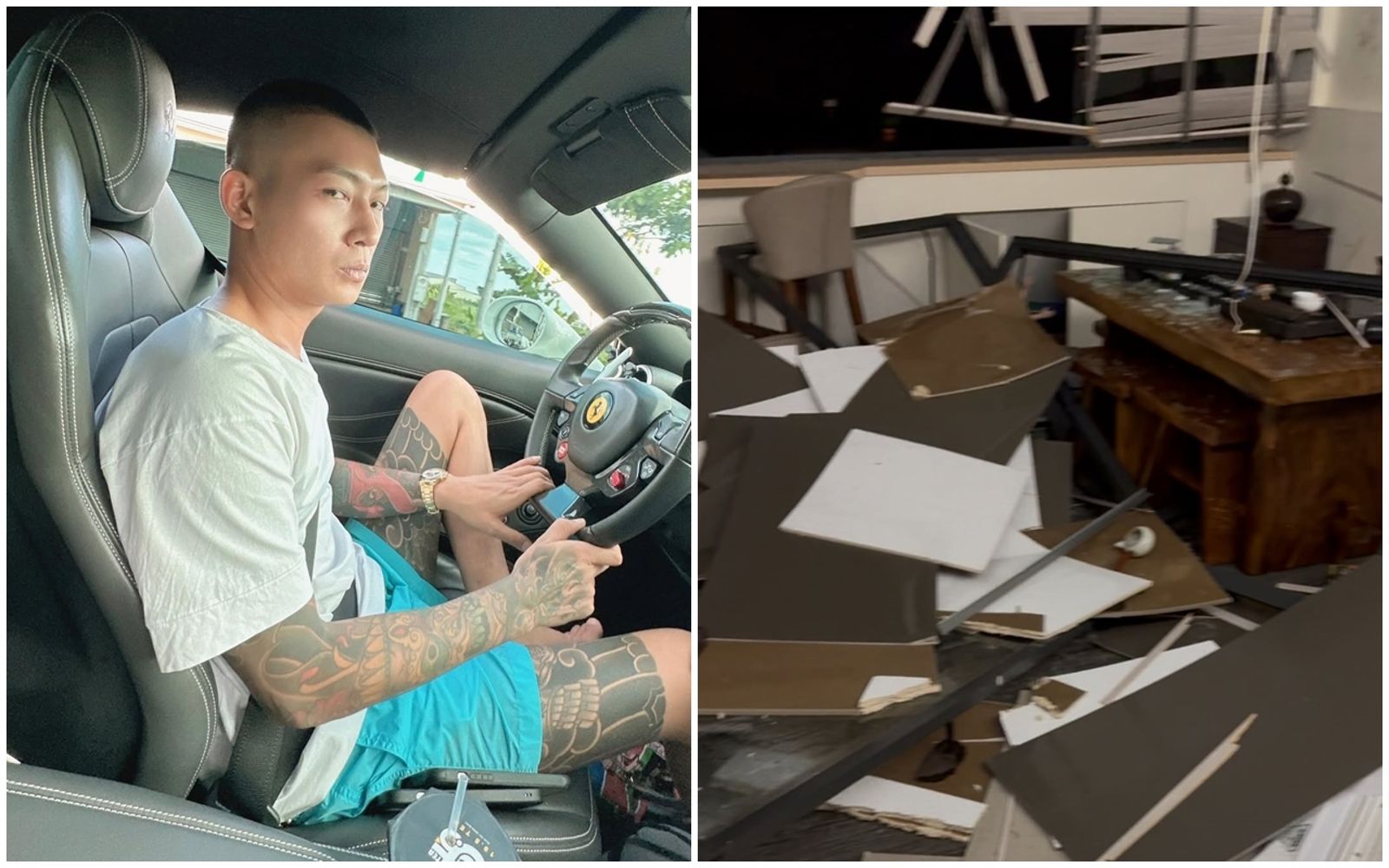 鳳梨今天凌晨突然在IG貼文,原本提到「風大道我覺得房子在晃」,後來他又po文透露,自己要趕夜車回去家裡,直呼「家全破了」。經過一段時間後,鳳梨就po出家中嚇人慘況影片,可見窗戶玻璃破裂、天花板砸落,家具全部被吹亂在一起,由於颱風強勁風雨,室內也有被雨水灌入的狀況。