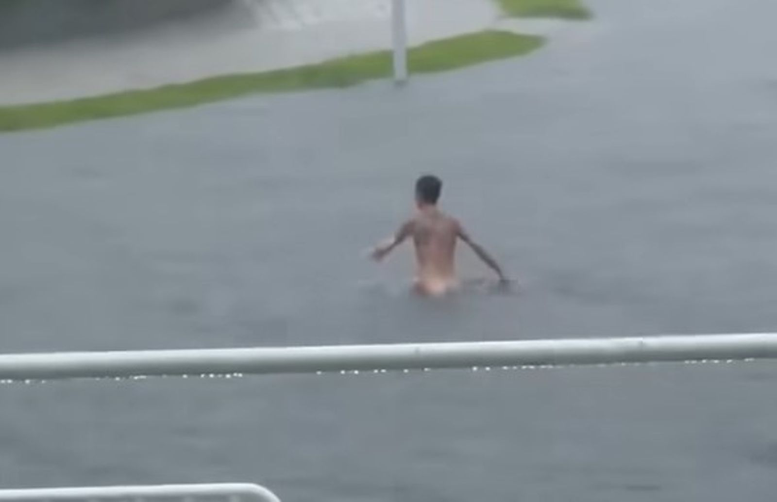 今(8日)中台灣遭暴雨轟炸,彰化縣內多處淹水成災尤其慘烈,員林龍燈公園滯洪池水位幾乎跟籃板一樣高,卻有一名男子趁機脫光光跳下滯洪池裸泳,過程被友人錄影PO網引發爭議。不過這位戲水裸男很快就被警方找到,警方訊後依妨害風化罪將其移送法辦。