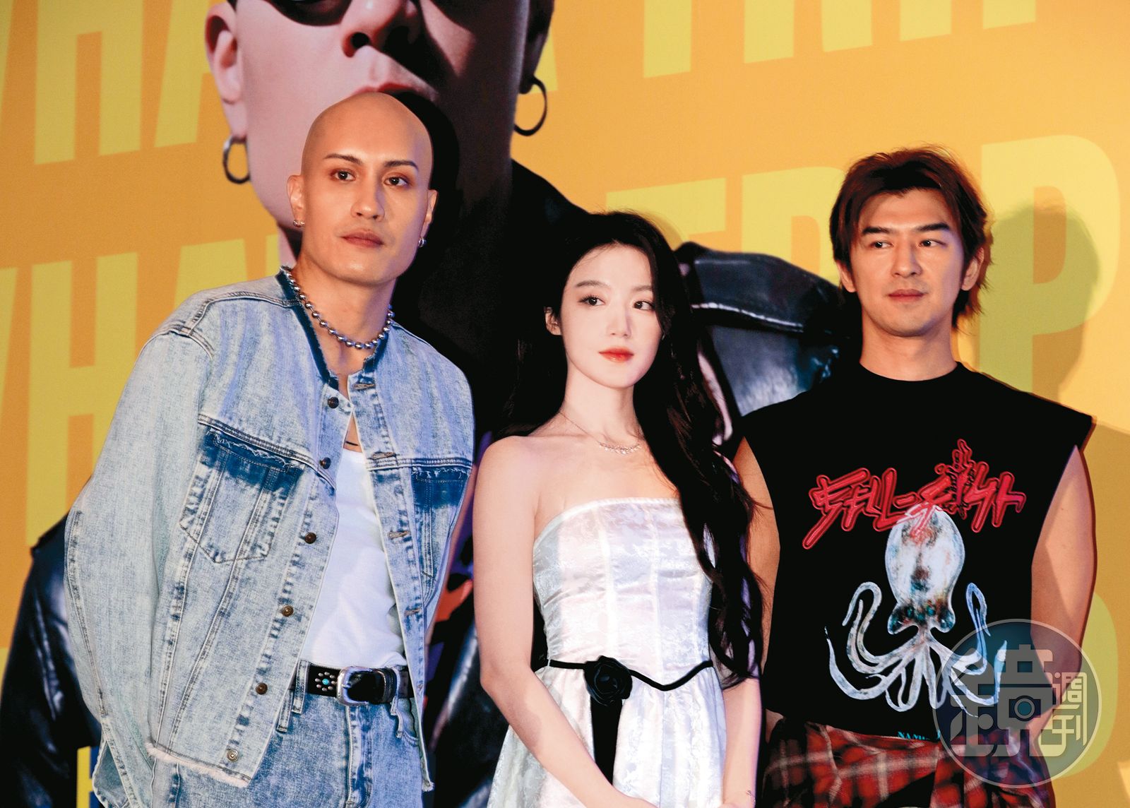 舒華(中)的冷白皮,即便在舞台旁沒打光的角落,也狠狠輾壓其他人,黃宣(左)、陳柏霖(右)的膚色自動降兩階。發布時間:2025.07.12 05:28 臺北時間