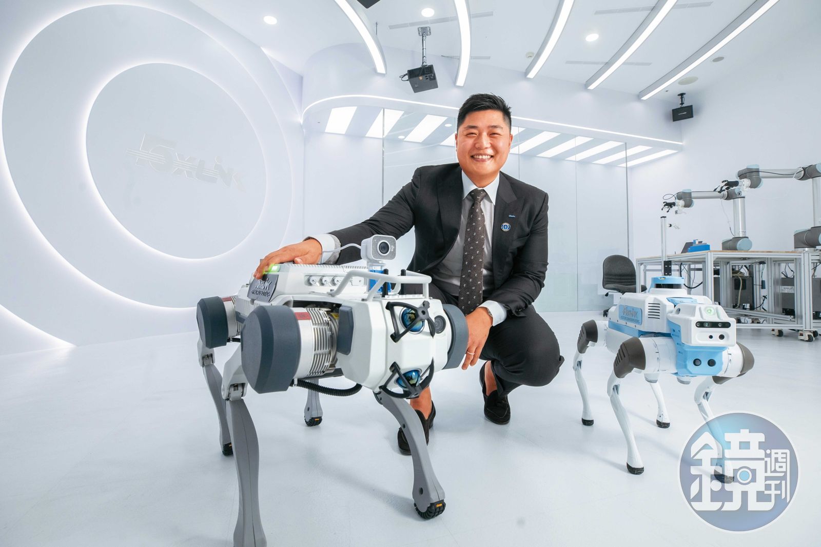 在「 我們這棟大樓裡,已經有好幾隻四足機器人在輪班巡邏。只要出現沒被登錄的人臉,沒關的門窗,或異常的煙霧或氣體,甚至火光,它就會馬上通報。還會用藍牙傳輸訊號,讓電梯開門,到各層樓去巡邏。」身高190公分,梳著俐落西裝頭,穿著合身西裝,看來不滿40歲的年輕主管,站在正崴集團土城總部一樓機器人實驗室的大螢幕前,指著一隻德國狼犬大小、正在辦公室內巡邏的機器狗,口沫橫飛地向本刊說明。