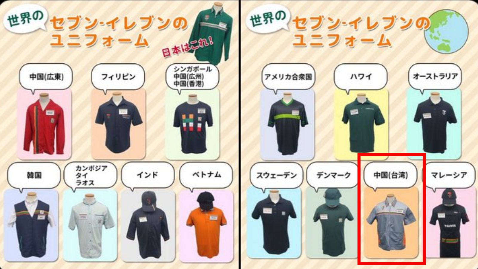 不過倒數第2件台灣人熟悉的那套制服,卻被寫下「中國(台灣)」,這讓網友相當不滿,網友就認為,7-11擺明故意的,如夏威夷後面也沒加註美國,「誰沒事會在台灣後面加中國?」。