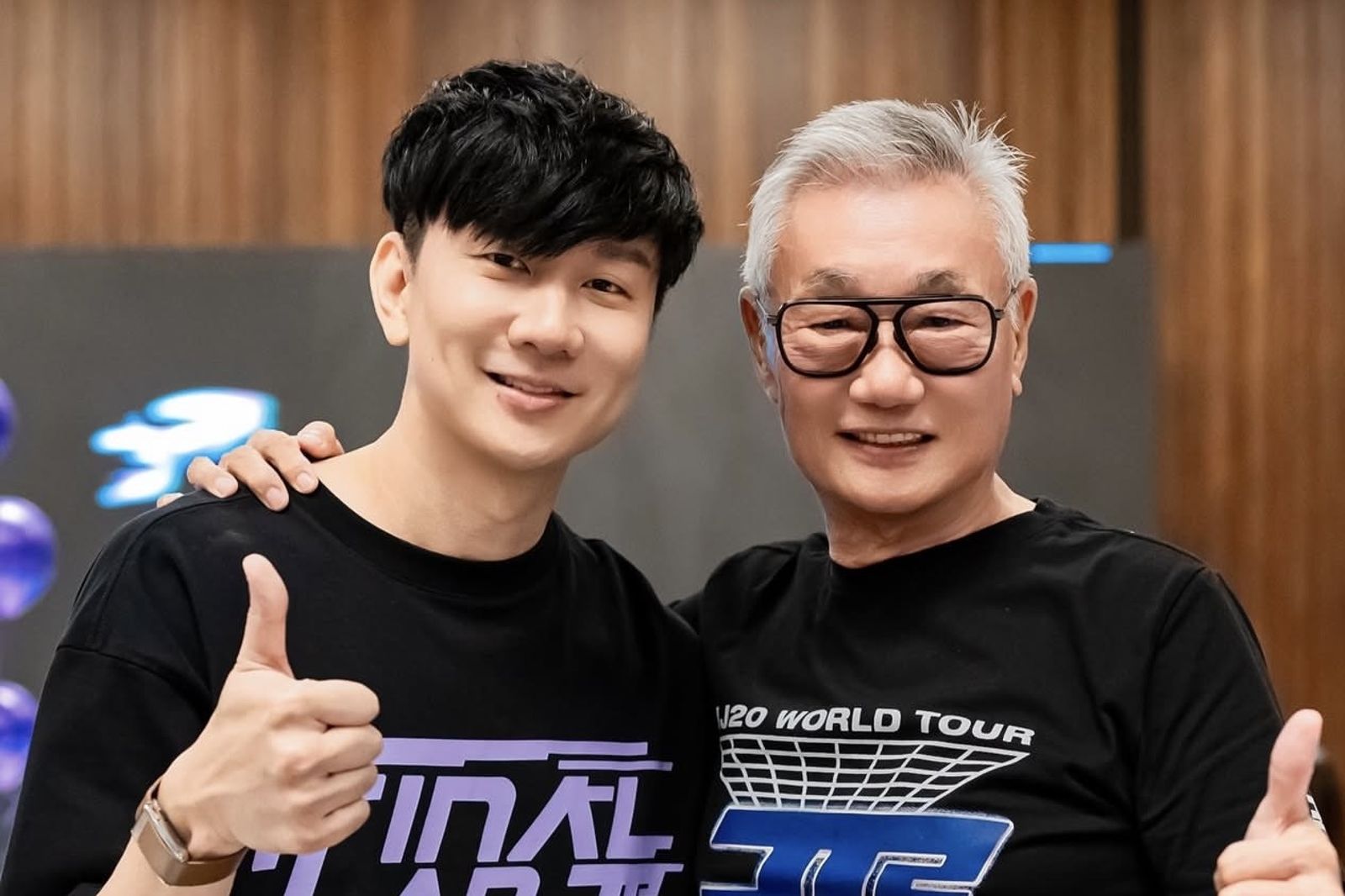 林俊傑的「JJ20 FINAL LAP」演唱會從2022年11月起跑,到2025年7月13日在鳥巢結束,兩年多的巡迴終於結束,林俊傑在IG發文曬出與爸爸的合照,從畫面中可看到,林爸爸將手搭在兒子肩上,兩人笑容神韻相似,都對著鏡頭比出讚的手勢,一舉一動展現出父子之間好感情,貼文發出後,粉絲紛紛留言為林俊傑打氣,並正能量喊話會等他回來。