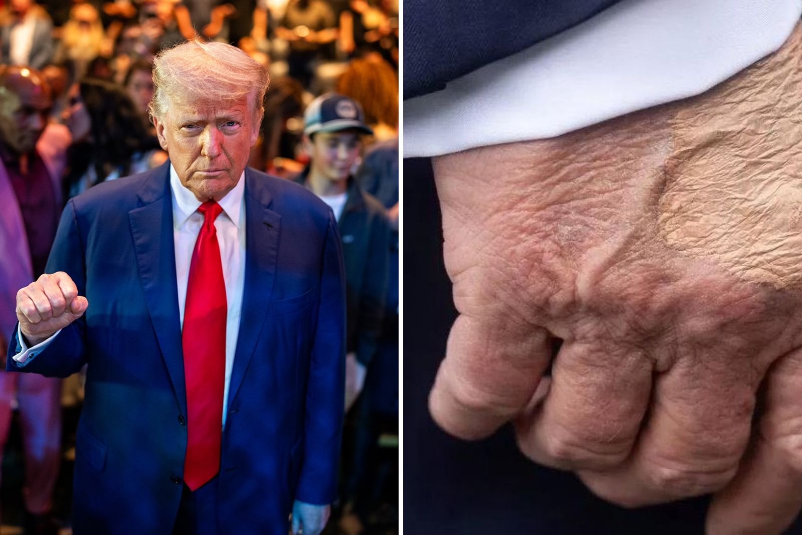 川普手部瘀青明顯,白宮稱是因常和民眾握手導致。(翻攝X)另,李威特再次就川普手上瘀青解釋,重申因頻繁跟人握手導致輕微軟組織刺激,還有使用阿斯匹靈作為心血管疾病預防療程緣故,最後她再次強調「總統川普健康狀況仍相當良好」