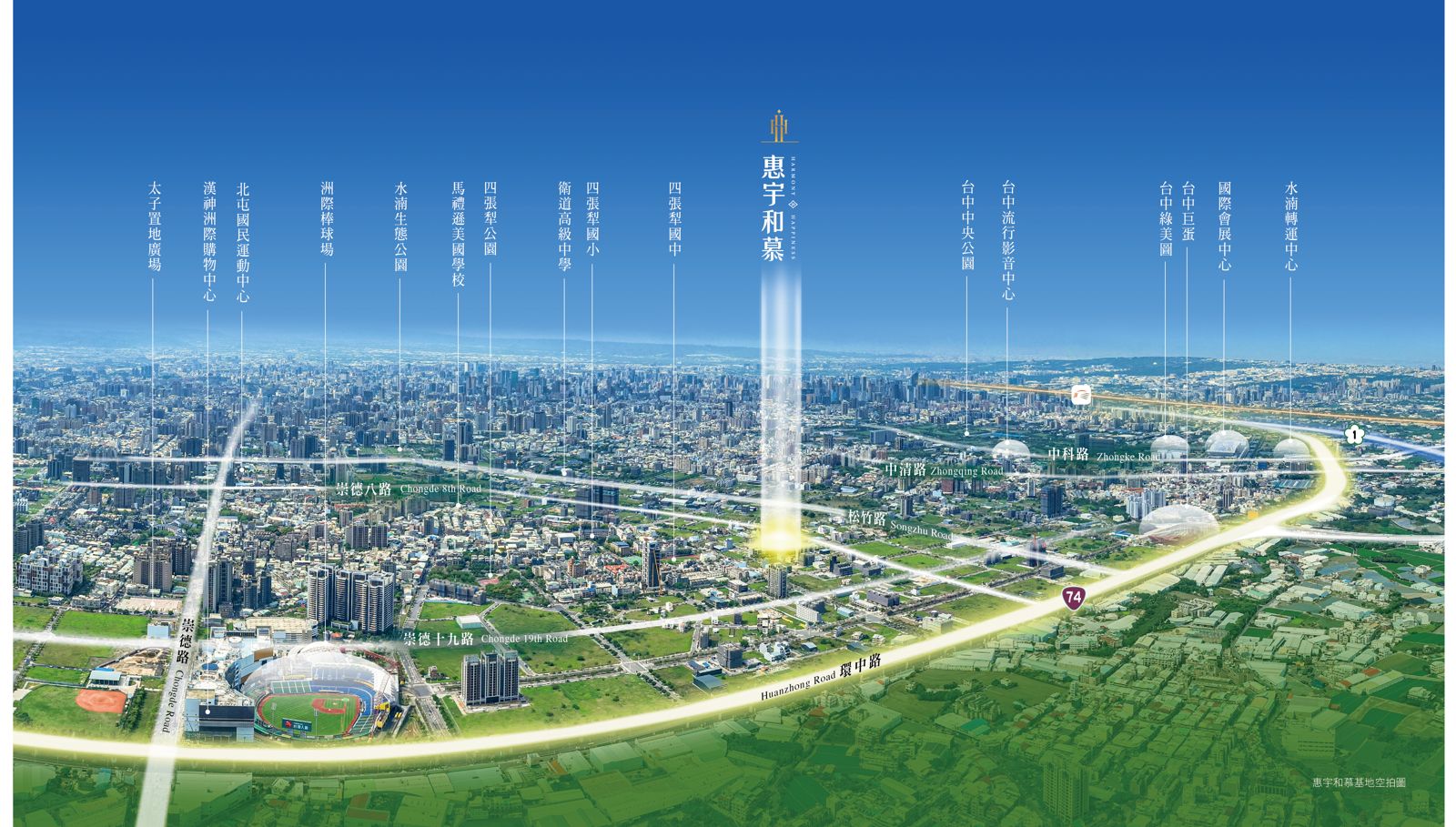 洲際漢神百貨僅1公里,台中最新的百貨公司就在咫尺距離,騎車或步行逛街皆可輕鬆抵達。洲際棒球場和巨蛋也在1.6公里左右可到達,當全台中人湧入此區看球賽、看演唱會時,住在「惠宇和慕」的住戶可以散步參加,避開擁擠的人潮與車潮,不論出門或返家都能用極短的時間享受國際盛會。