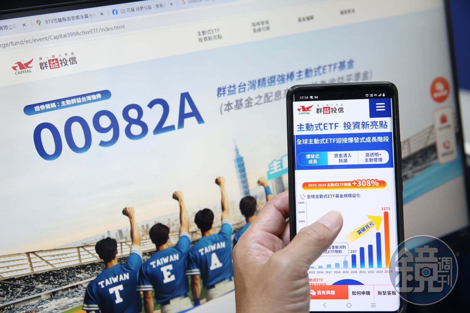 據群益投信最新配息公告顯示,00982A主動群益台灣強棒ETF首次配息,預估配發金額為新臺幣0.236元,若以公告當日、7月31日收盤價11.76元計算,預估年化配息率逾8%,相較近期高股息ETF吹起降息風,主動式ETF則端出績效達成投資人對配息的期待。